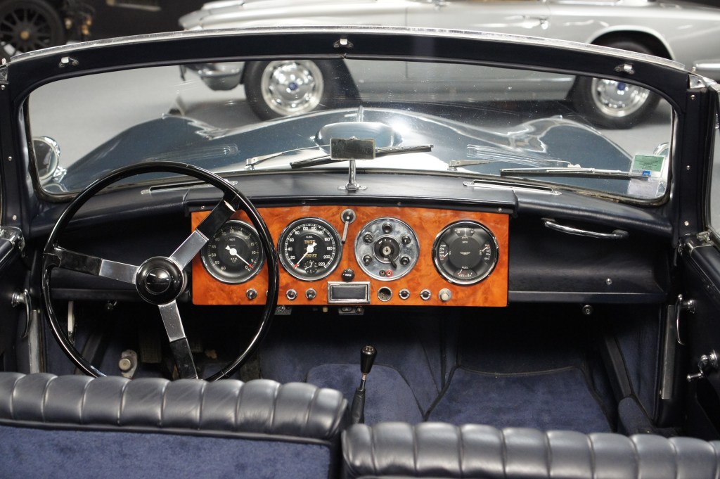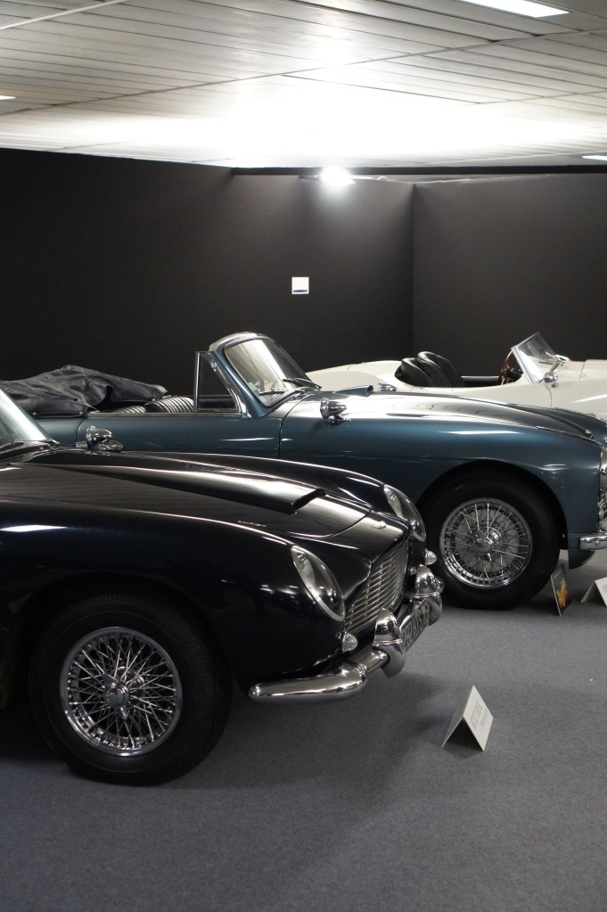 La visite de l’exposition s’ouvrait sur une sélection de rares et élégantes GT anglaises qui appartenaient à un même propriétaire. Cette collection débutée dans les années 90, comprenait de magnifiques coupés et cabriolets, Aston Martin DB et AC Bristol, couvrant la période 1955-1965.