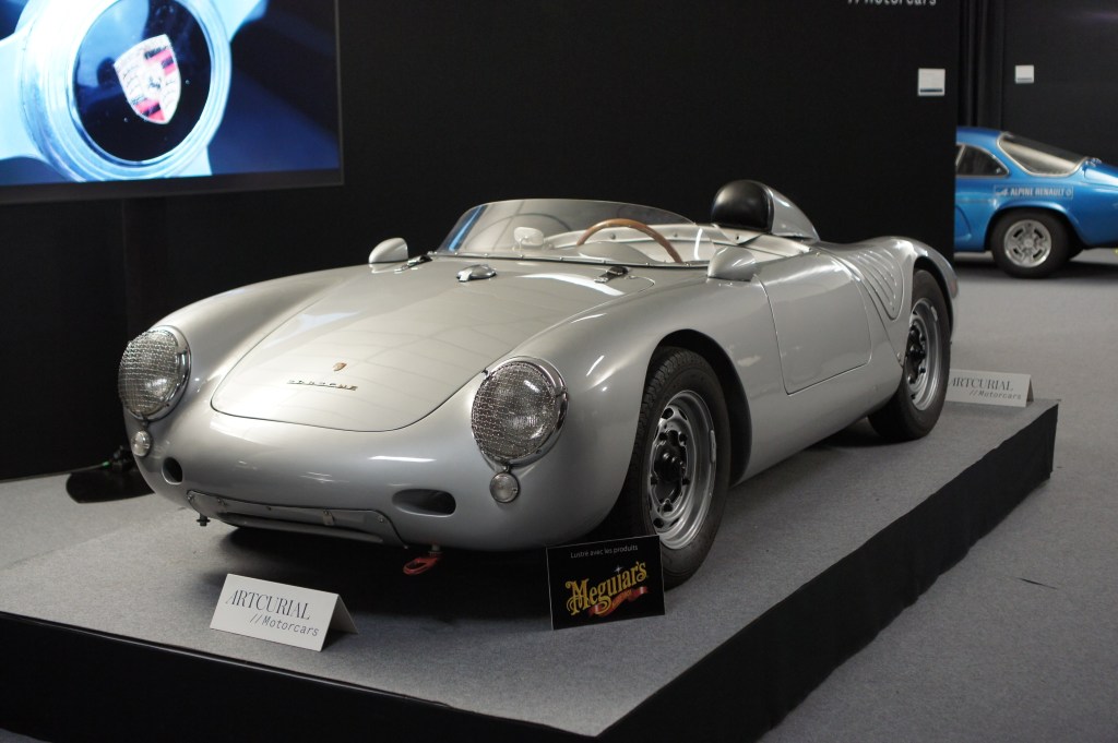 Encore plus rare était cette Porsche 550A Spyder produite en 1957. Entre 1957 et 1962, cette voiture acquit un joli palmarès dans diverses courses organisées par la SCCA (Sport Car Club of America), avant de passer entre les mains de George Barber Jr., grand pilote américain entre les années 50 et 70, et de plusieurs collectionneurs privés. Entièrement restaurée, la majeure partie des pièces (dont le châssis tubulaire) demeure d’origine, et avec son moteur de 1500 cm3, elle reste éligible aux grands évènements automobiles comme le Mans Classic ou les Mille Miglia.