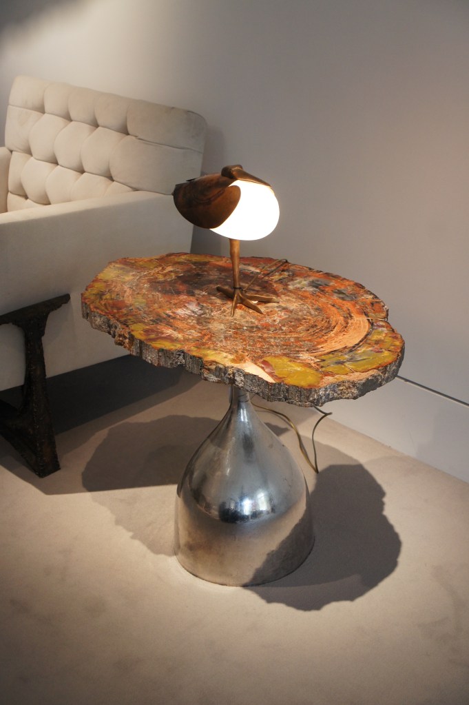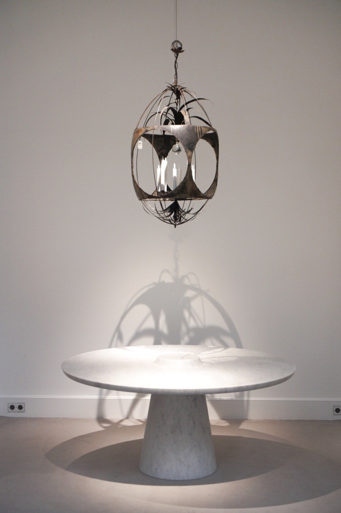 2007 Lathed table, Marc Newson ; 1965 chandelier, Claude and François-Xavier Lalanne