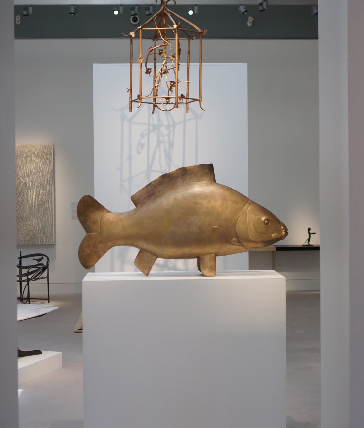 1976Table with Caryatids and Atlantes, Diego Giacometti ; 1990 Pair of Williamsburg armchairs, Claude Lalanne ; 1972 ‘Weisses Feld’, Günther UeckerFrom left to right: Chat Maître d’Hôtel (designed in 1967) and ca. 1977 Autruche, Diego Giacometti ; 1999 Singe II, François-Xavier Lalanne