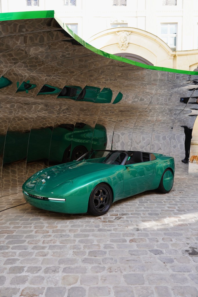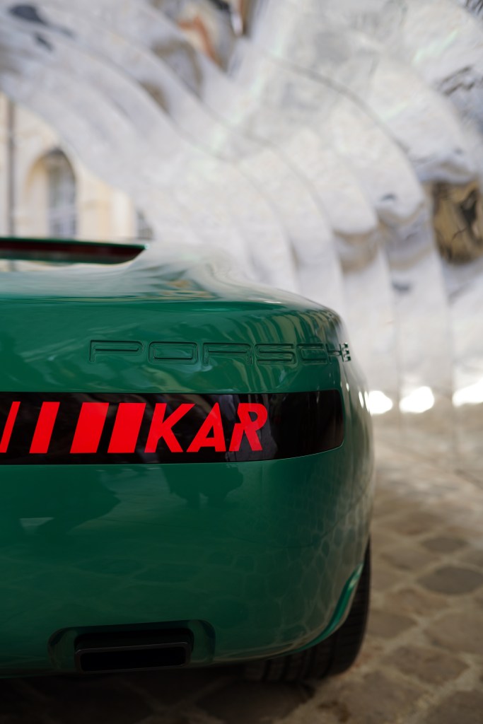 This unique Porsche 956, customized by Art de l’Automobile KAR, was on display during Fashion Week from September 30 to October 3, in the courtyard of a private mansion in the Marais.