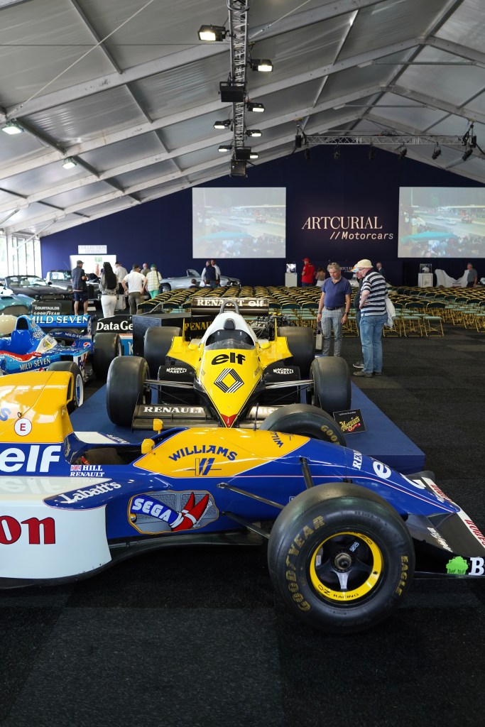 Partenaire depuis quelques années de l’événement, Artcurial Motorcars proposait sa vente aux enchères le samedi 3 juillet. Les lots les plus en vue de la vente comprenaient une Formule 1 Renault RE40 pilotée lors de la saison 1983 par Alain Prost, quadruple champion du monde de F1, une Maserati A6GCS/53 Fiandri Spyder de 1954 et une Mercedes-Benz 300 SL Roadster de 1958.