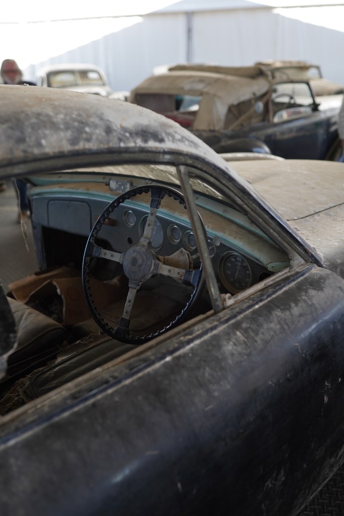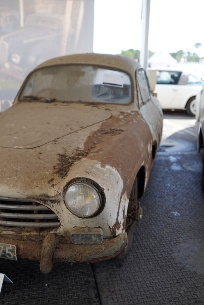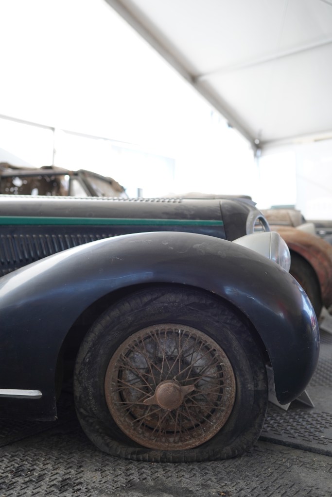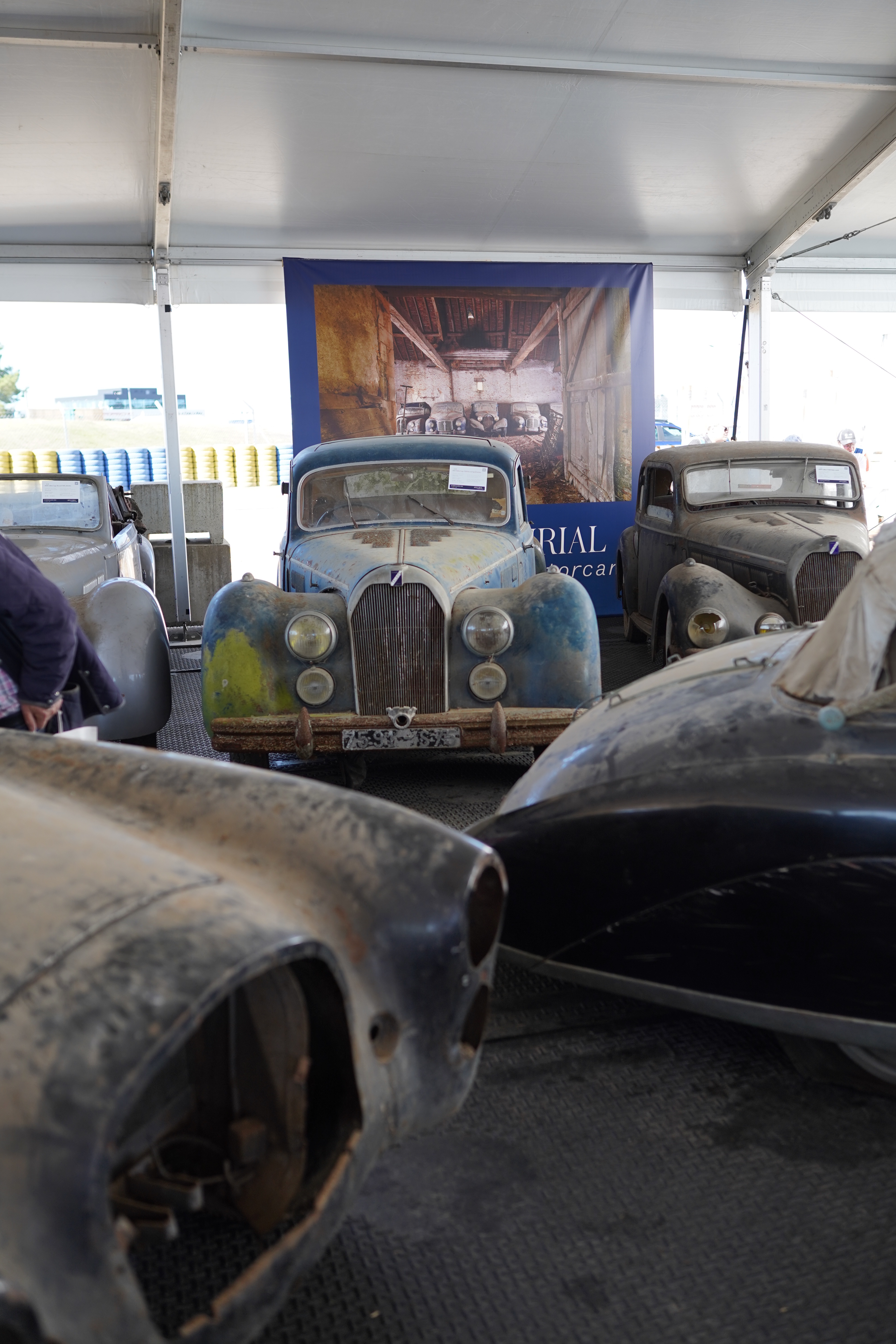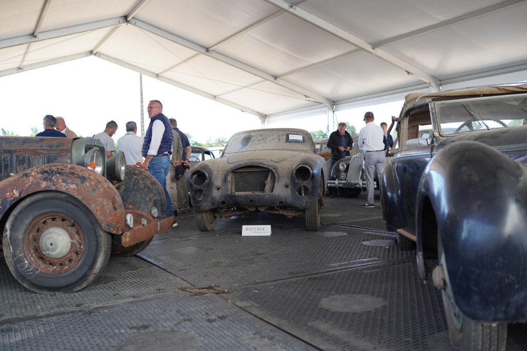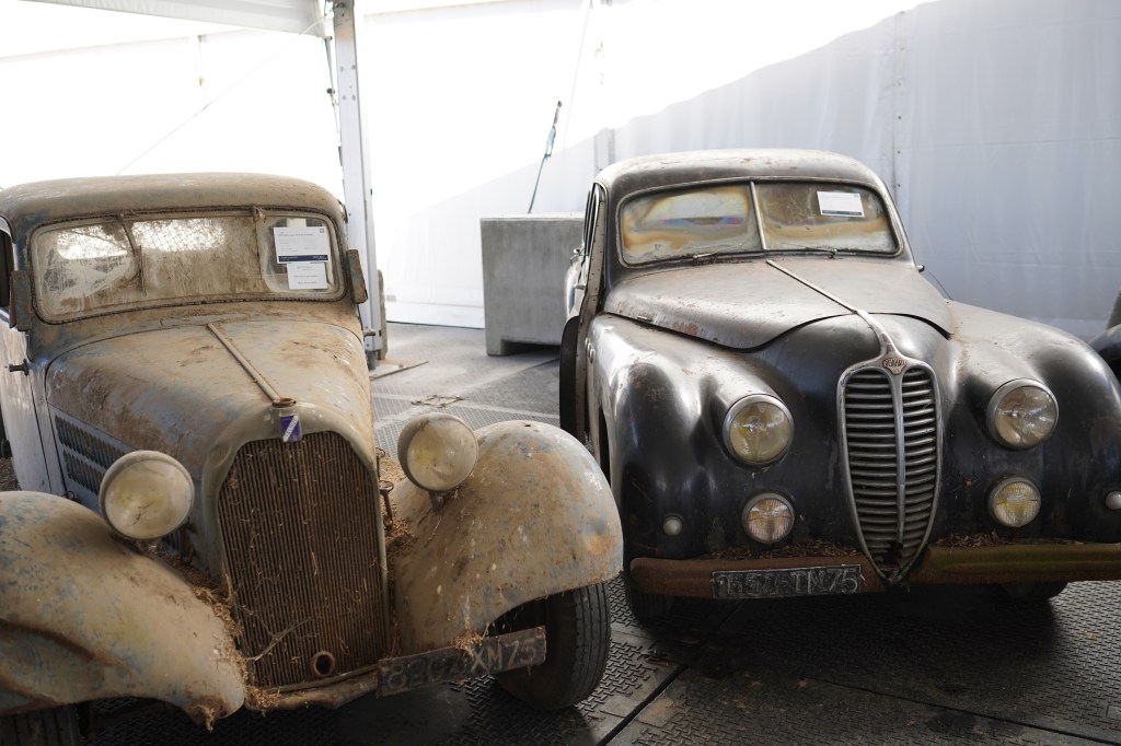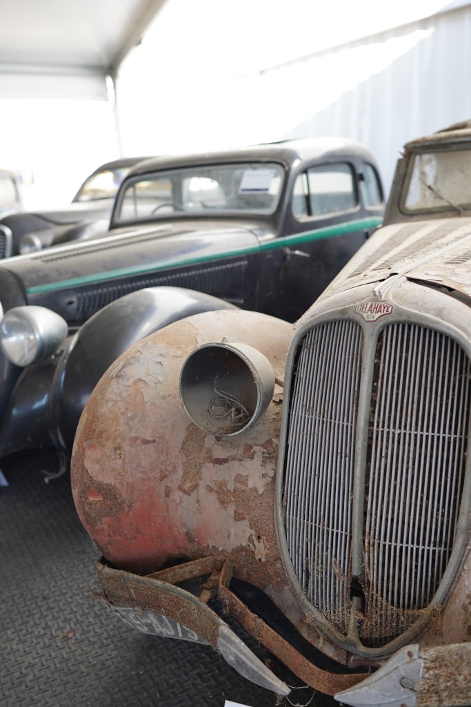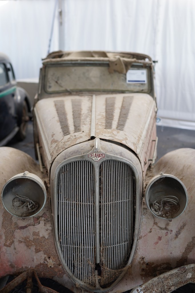 A côté de toutes ces belles voitures au catalogue, le clou de la vente était peut-être la Collection Pierre Héron. Né en 1934, ce passionné a rassemblé entre 1965 et 1973 une sélection rare d’automobiles du milieu du vingtième siècle. Remisées pendant 30 à 45 ans selon les modèles dans une grange en Normandie, les Delahaye (dont une très rare 135M Cabriolet “El Glaoui” par Figoni & Falashi, du nom du pacha marocain qui en commanda 18 exemplaires), Talbot Lago, Hispano Suiza, Salmson ou Hotchkiss Grégoire constituaient un témoignage rare de cette periode de l’histoire automobile.