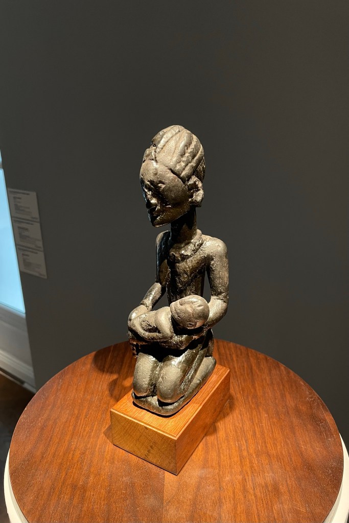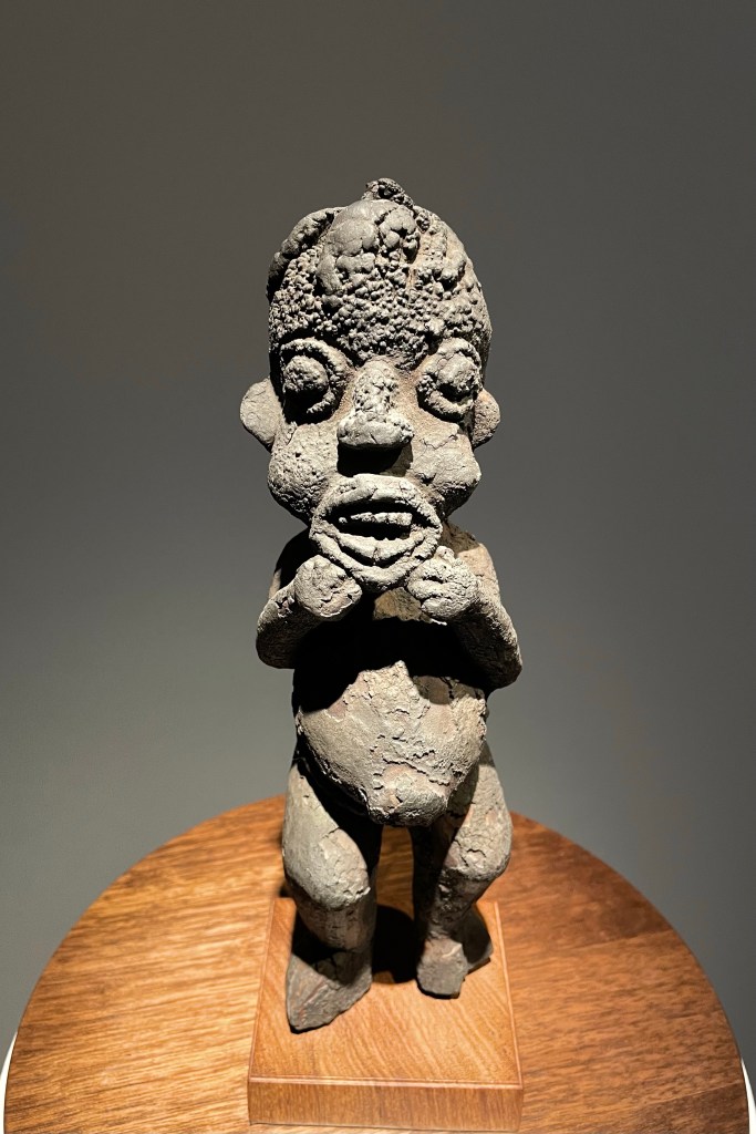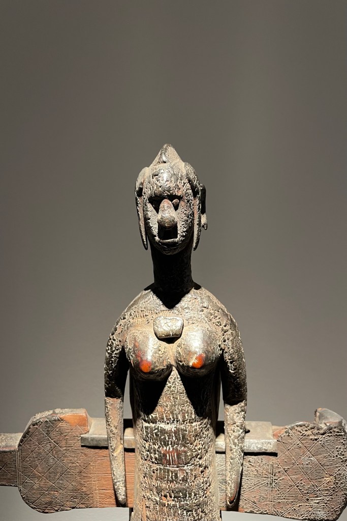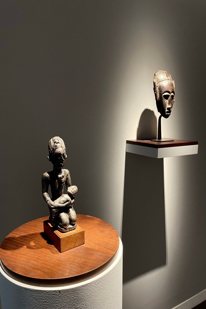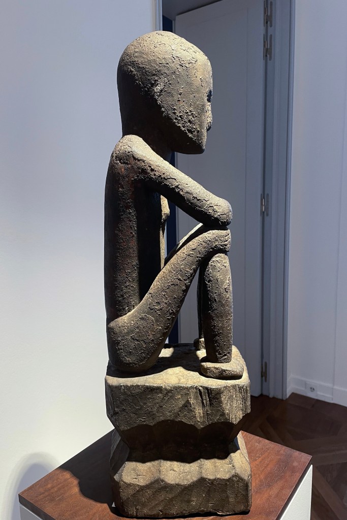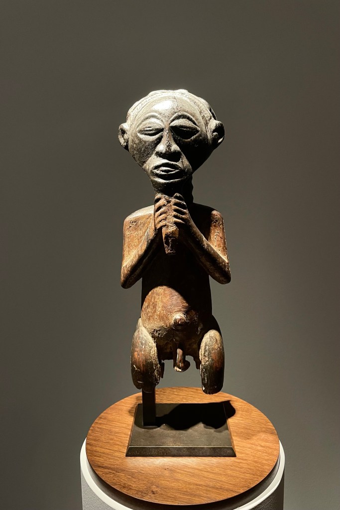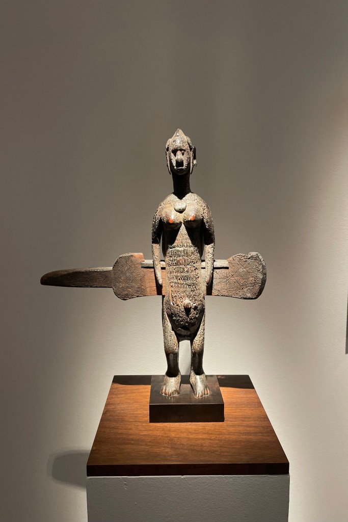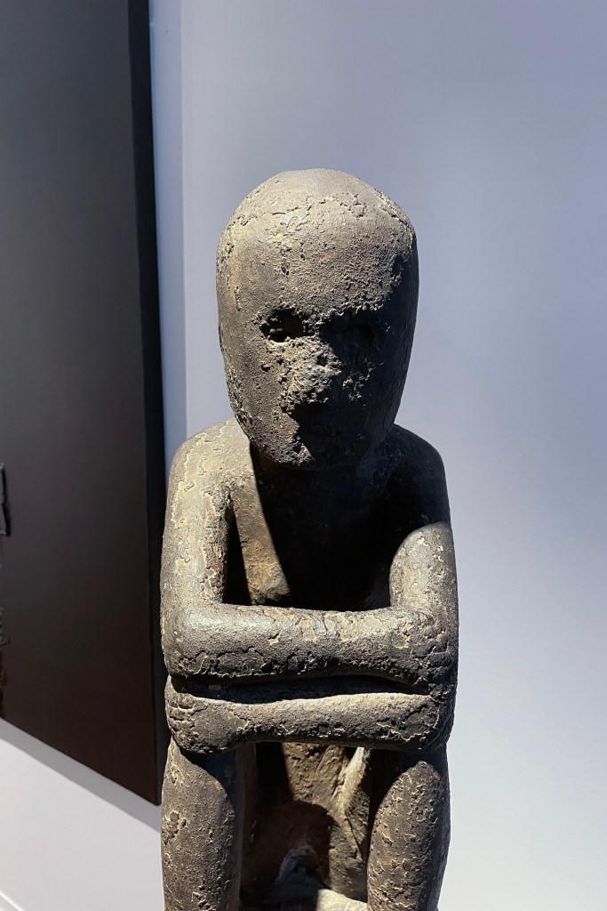 Dans le sens horaire : cimier Sénufo, Côte d’Ivoire (“Painting”, Joan Miró) ; statue Songye, République Démocratique du Congo (“Composition à la poupée”, Fernand Léger) ; statue faîtière Tekoteko Maori, Nouvelle-Zélande ; statue Sénufo, Côte d’Ivoire De haut en bas : statue Dogon, Mali ; serrure Bamana, MaliDe haut en bas : bouchon de flûte Wusear Biwat, rivière Yuat, région du Bas-Sepik, Papouasie-Nouvelle-Guinée (“Peinture 175 x 222 cm”, Pierre Soulages) ; siège à cariatide Luna-Hemba, République Démocratique du Congo (“Tête d’homme de profil II”, Pablo Picasso)Statue Bulul Ifugao, cordillère centrale, province d’Ifugao, Île de Luçon, République des PhilippinesDe haut en bas : statue Bahau Dayak, rivière Mahakam, province de Kalimantan oriental, Île de Bornéo, Indonésie ; statue Kut Jaraï, région des Hauts Plateaux du Centre, VietnamStatue Bamiléké, Cameroun (“Schwarze Kaffeekanne”, Georg Baselitz)Dans le sens horaire : masque Dan-Mano, Libéria ; masque Bété, Côte d’Ivoire ; masque okuyi Punu, Gabon ; masque Bamana, MaliDans le sens horaire : statue d’autel A-Tshol Baga, Guinée ; statue Kusu, République Démocratique du Congo ; harpe Nedomu Mangbetu, République Démocratique du Congo ; statue Dogon, MaliDans le sens horaire : statue Dogon N’Duléri, cercle de Bandiagara, Mali (masque Bamana, Mali derrière) ; Statue Bamiléké, CamerounDans le sens horaire : masque Baulé, Côte d’Ivoire ; statue Baulé, Côte d’Ivoire ; vue de l’exposition