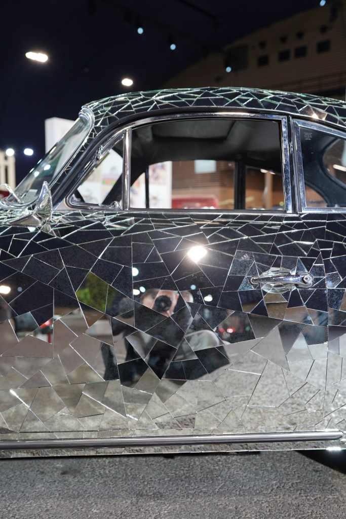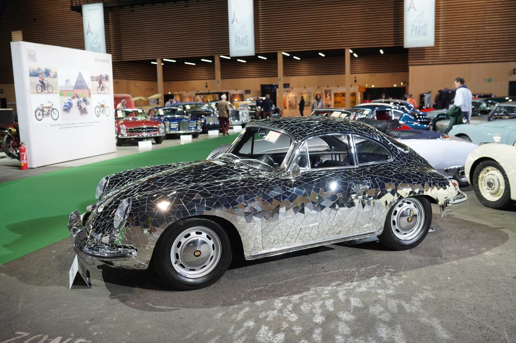 Véritable œuvre d’art, la Porsche 356C 1600 de 75 ch de 1964 ‘Mirror 356’, recouverte par de nombreux fragments de mirroirs (jusqu’au tableau de bord), a été réalisée en 2003 par l’artiste autrichien Gustav Troger (né en 1951).