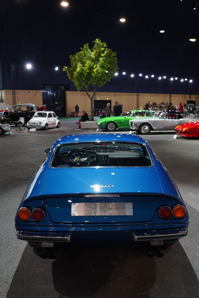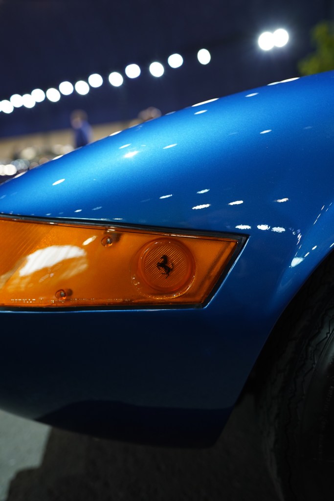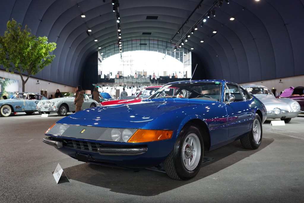 Commençons avec cette magnifique Ferrari 365 GTB/4 ‘Daytona’ Berlinetta de 1970 dans sa livrée bleu Dino métallisé plutôt rare. C’est le styliste de Pininfarina, Leonardo Fioravanti, qui fut à l’origine du nez de requin si caractéristique des 365 GTB/4 qui étaient les Ferrari de série les plus chères et les plus rapides lors de leur commercialisation en 1968.