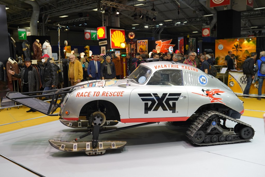 Le salon accueillait cette année une Porsche 356A de 1956 un peu spéciale : préparée par l’équipe de Valkyrie Racing Team et équipée de chenilles et de skis, la pilote américaine Renée Brinkerhoff a traversé l’Antarctique à son volant, dans le but de lever des fonds pour des associations luttant contre le trafic des enfants.