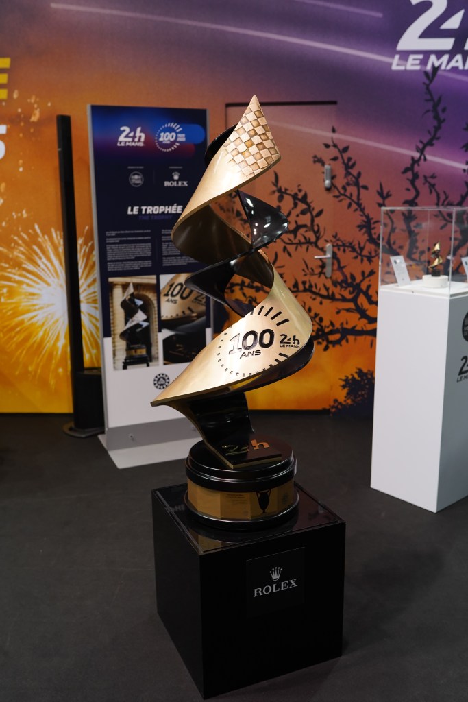 Terminons enfin avec le stand dédié aux 24 Heures du Mans, dont c’est le centenaire cette année. L’occasion de voir de près le trophée spécial qui sera offert aux vainqueurs de cette édition particulière !
