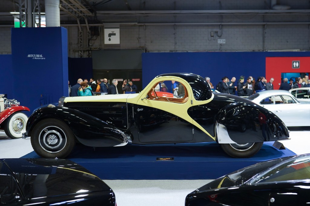 Un des modèles les plus emblématiques de Bugatti, la Type 57 Atalante et sa classieuse livrée noire et ivoire demeure un des trois exemplaires à toit ouvrant ayant survécu, sur les dix produits entre 1935 et 1936. Livrée neuve à Marseille en 1935, elle participa au Rallye des Alpes 1936.