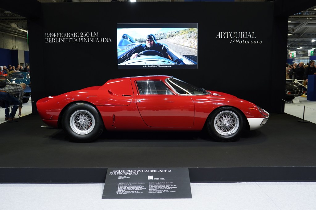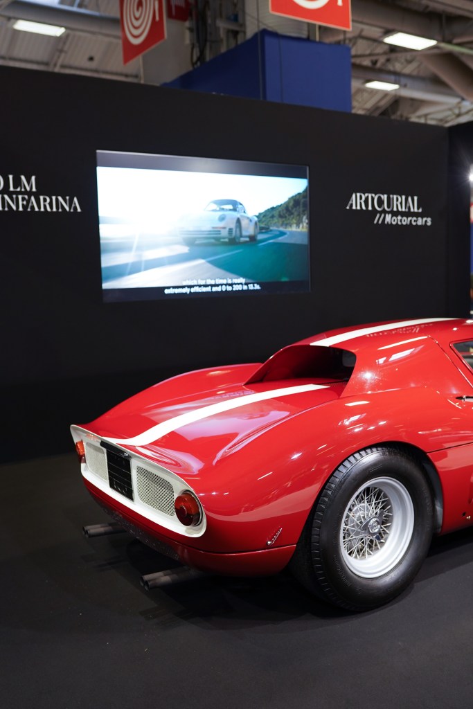 C’était le clou de la vente Artcurial Motorcars qui se tenait au sein même du salon Rétromobile, mais elle n’a pas trouvé preneur : la 250 LM (‘LM’ pour Le Mans) est la première Ferrari de compétition à moteur V12 en position centrale. Si en 2023 on célèbre les soixante ans du modèle, c’est en 1965 que la 250 LM a acquis ses lettres de noblesse en dominant les 24 Heures du Mans (1ère, 2ème et 6ème place pour des 250 LM, avec Masten Gregory et Jochen Rindt au volant de la Ferrari victorieuse, et une 275 GTB à la 3ème place) qui étaient promises à Ford pour les bookmakers. La 250 LM Berlinetta de 1964 proposée ici faisait partie des 32 exemplaires qui n’ont pas couru en compétition et était dans un état irréprochable.