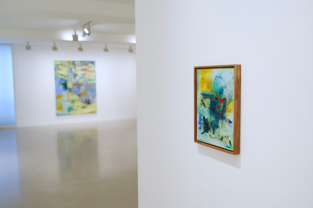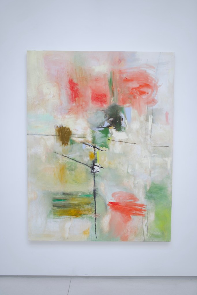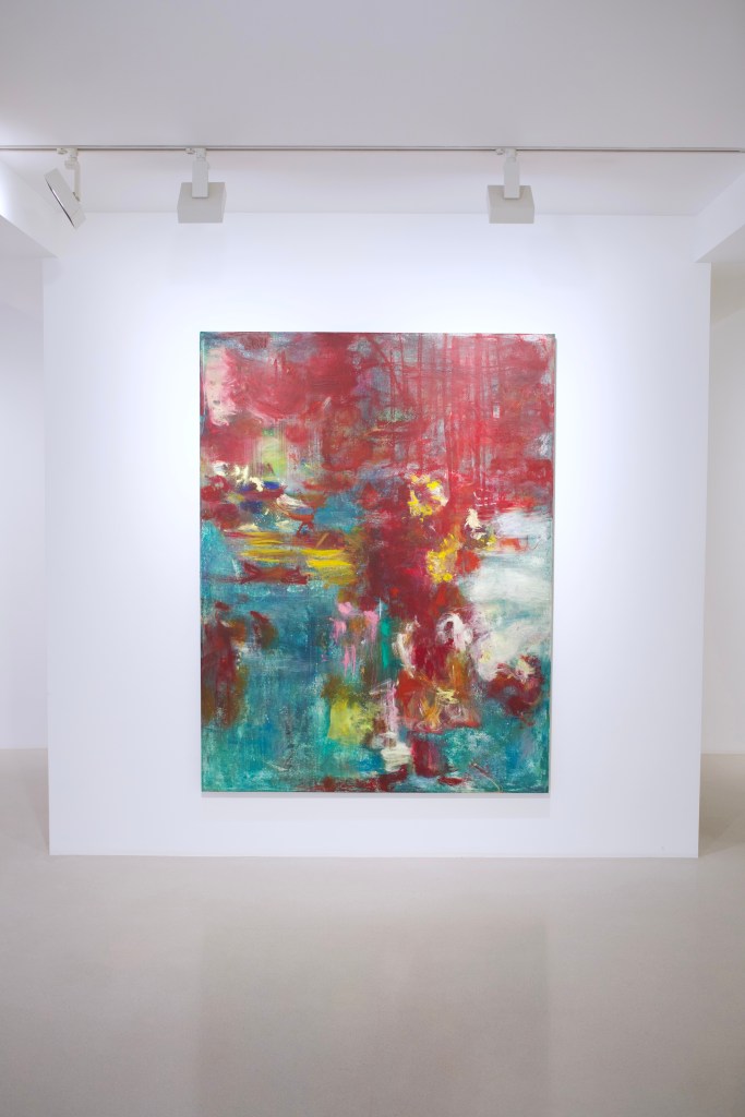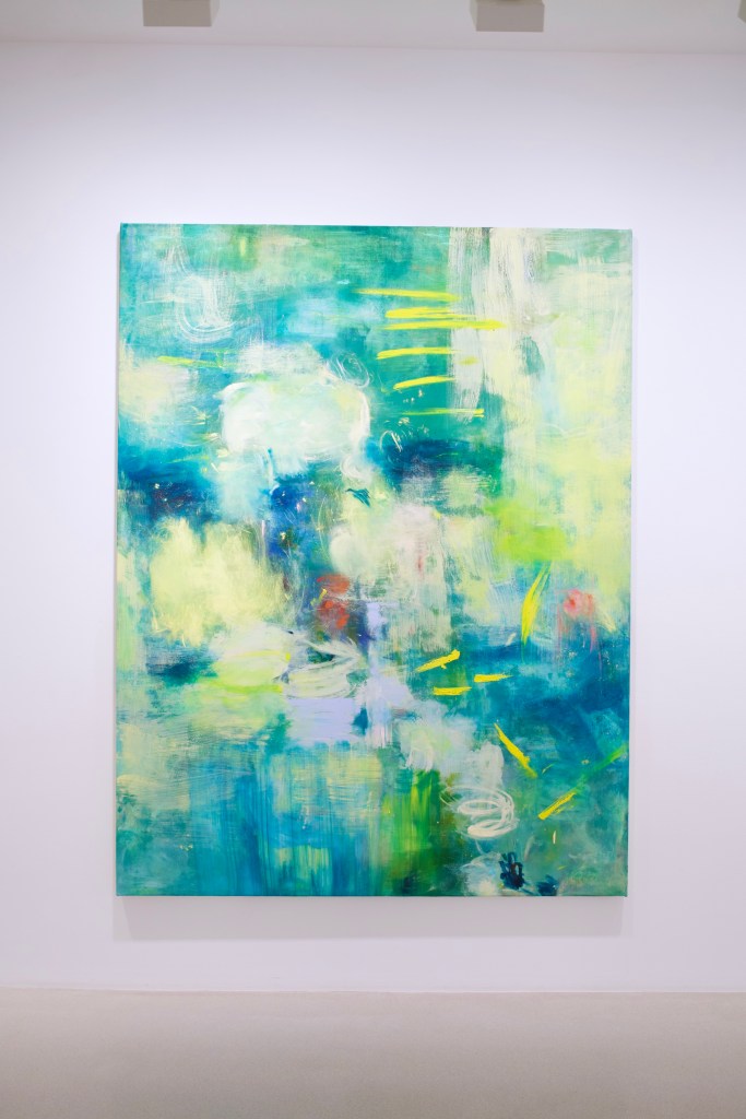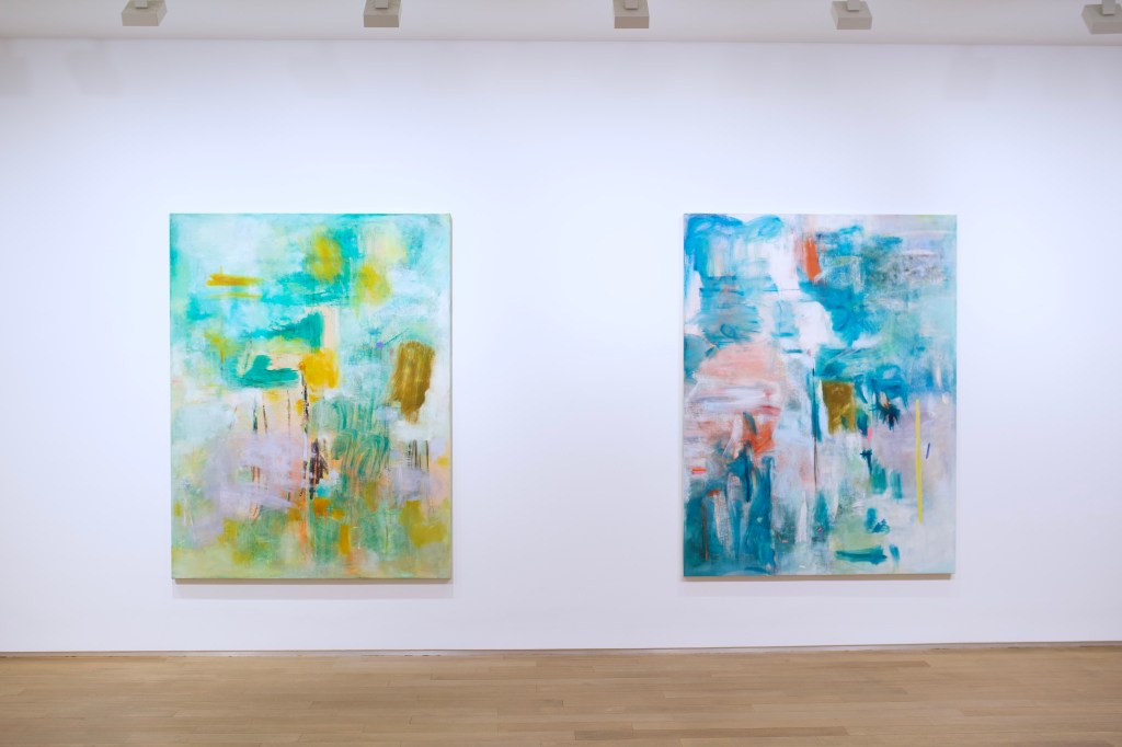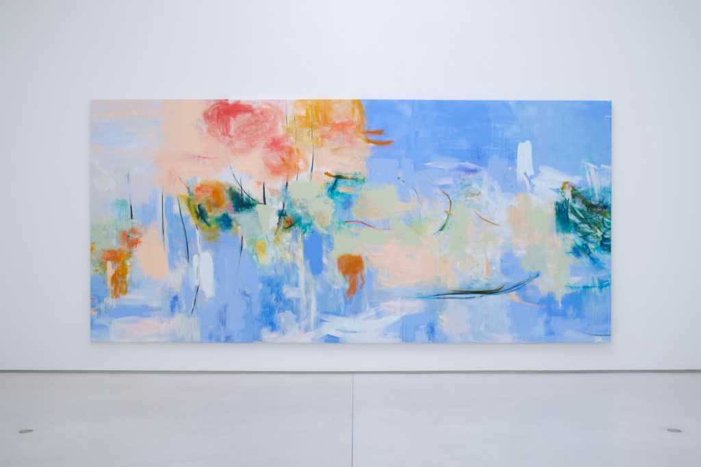 The exhibition ‘Flyer and the Seed’ presents a series of canvases, most of them large formats painted from autumn 2022 onward. With their color and movement, the works naturally evoke Turner’s paintings or Monet’s late works, but also the postwar lyrical abstraction of artists such as Zao Wou-Ki, Joan Mitchell, and Helen Frankenthaler. Beyond their abstract character, the pieces at times seem to include anthropomorphic or vegetal elements. Lines—referencing Paul Klee’s research (as the artist mentions in an interview, see 17:30)—also help structure the compositions while giving them a certain dynamism.