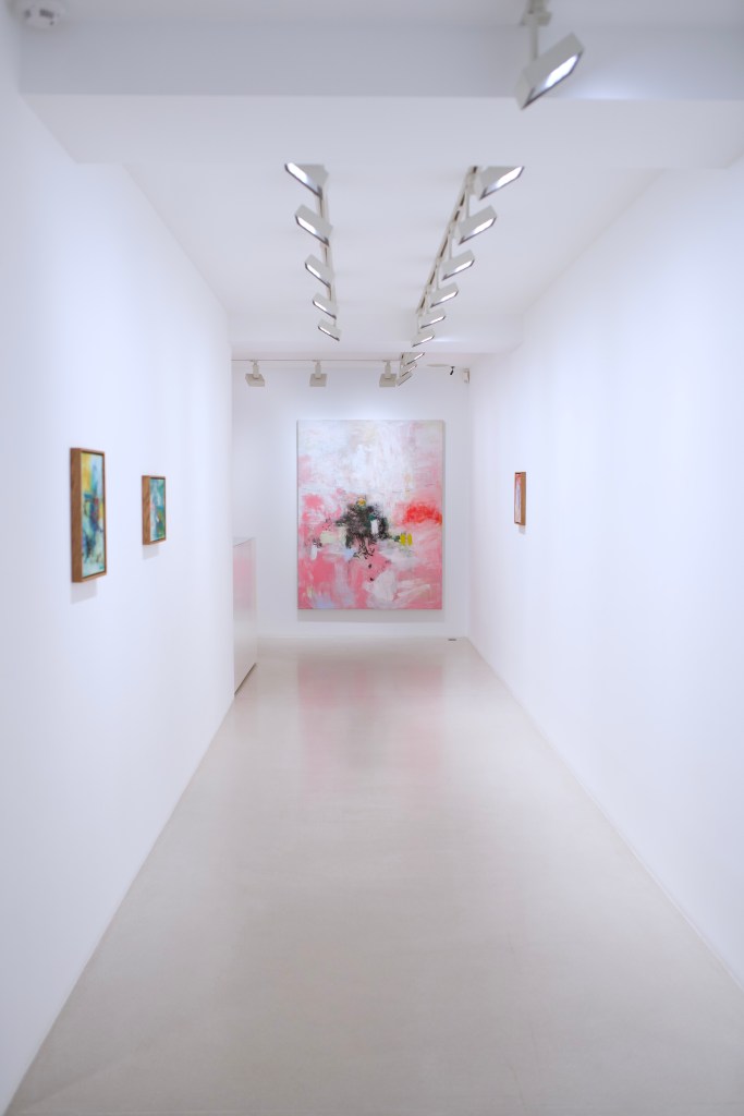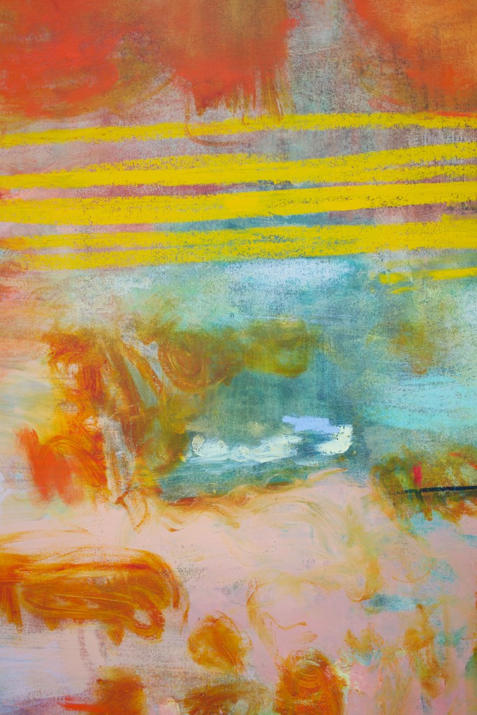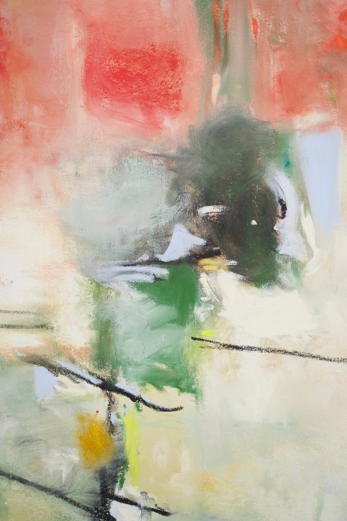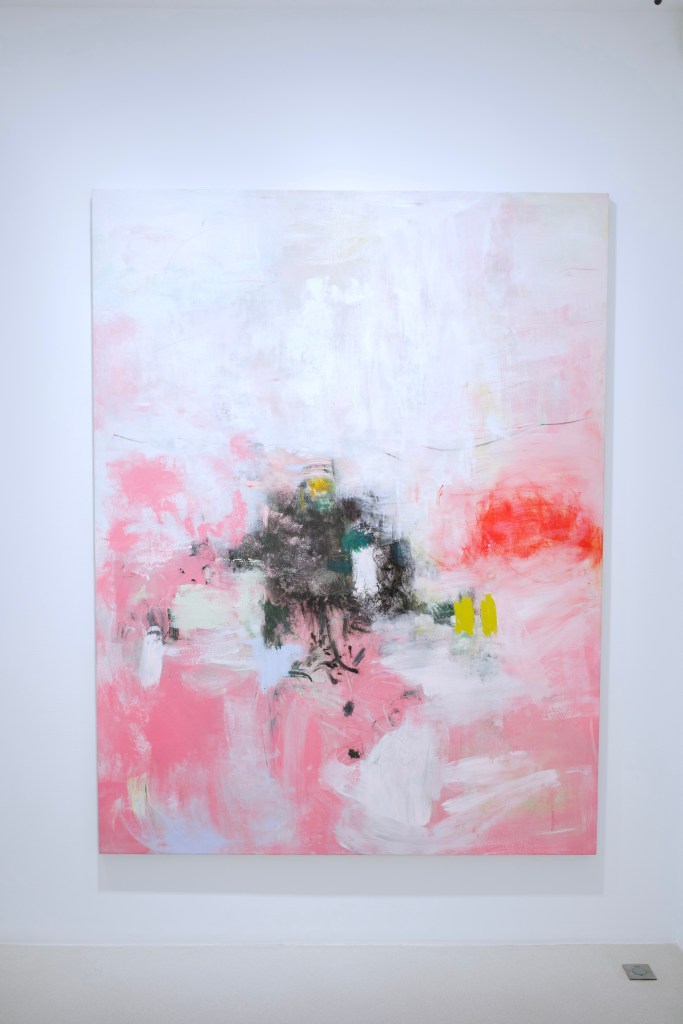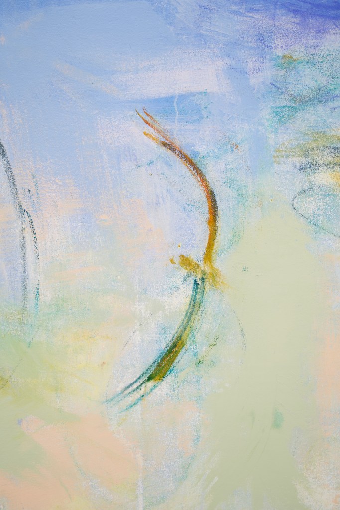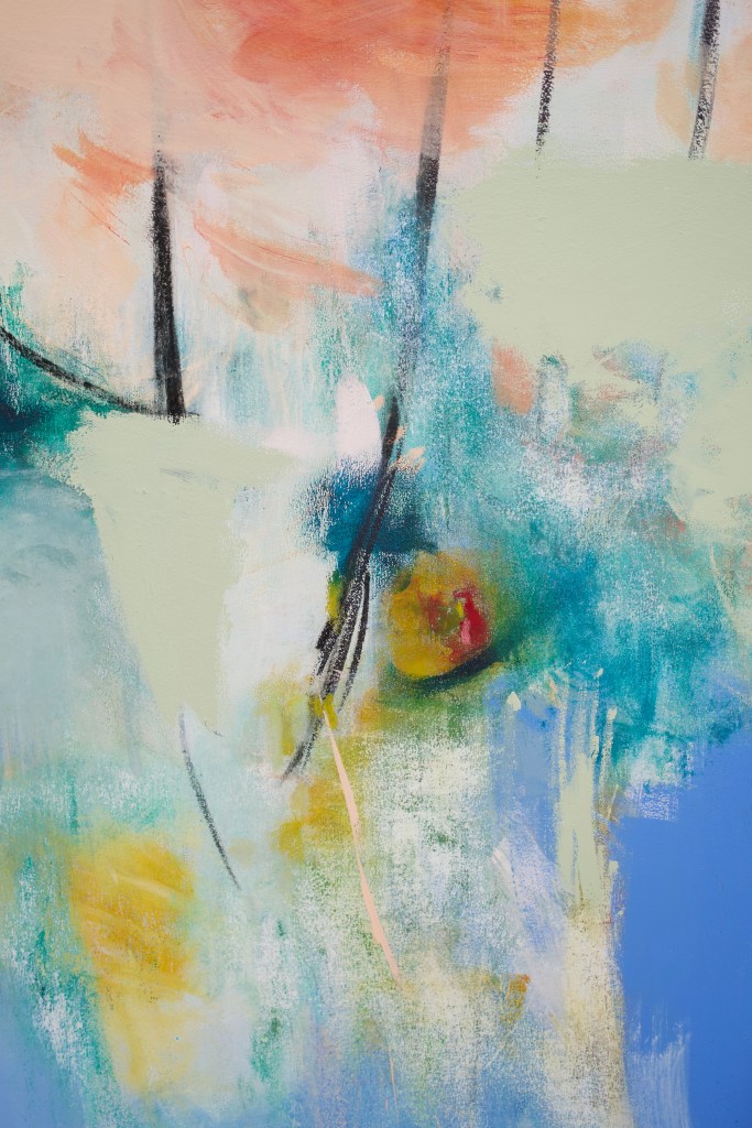 The exhibition ‘Flyer and the Seed’ presents a series of canvases, most of them large formats painted from autumn 2022 onward. With their color and movement, the works naturally evoke Turner’s paintings or Monet’s late works, but also the postwar lyrical abstraction of artists such as Zao Wou-Ki, Joan Mitchell, and Helen Frankenthaler. Beyond their abstract character, the pieces at times seem to include anthropomorphic or vegetal elements. Lines—referencing Paul Klee’s research (as the artist mentions in an interview, see 17:30)—also help structure the compositions while giving them a certain dynamism.