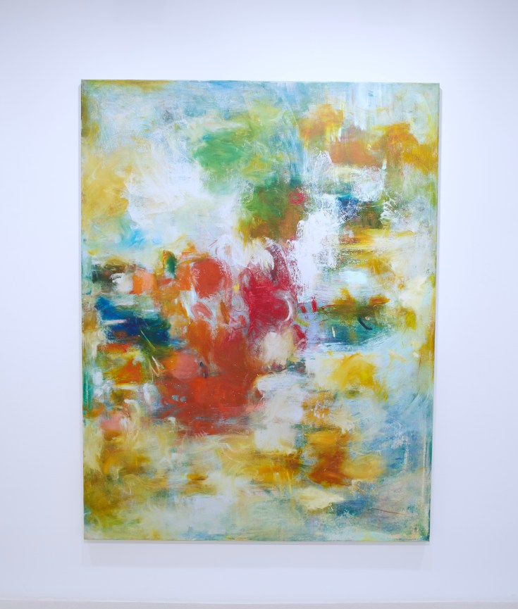 The exhibition ‘Flyer and the Seed’ presents a series of canvases, most of them large formats painted from autumn 2022 onward. With their color and movement, the works naturally evoke Turner’s paintings or Monet’s late works, but also the postwar lyrical abstraction of artists such as Zao Wou-Ki, Joan Mitchell, and Helen Frankenthaler. Beyond their abstract character, the pieces at times seem to include anthropomorphic or vegetal elements. Lines—referencing Paul Klee’s research (as the artist mentions in an interview, see 17:30)—also help structure the compositions while giving them a certain dynamism.