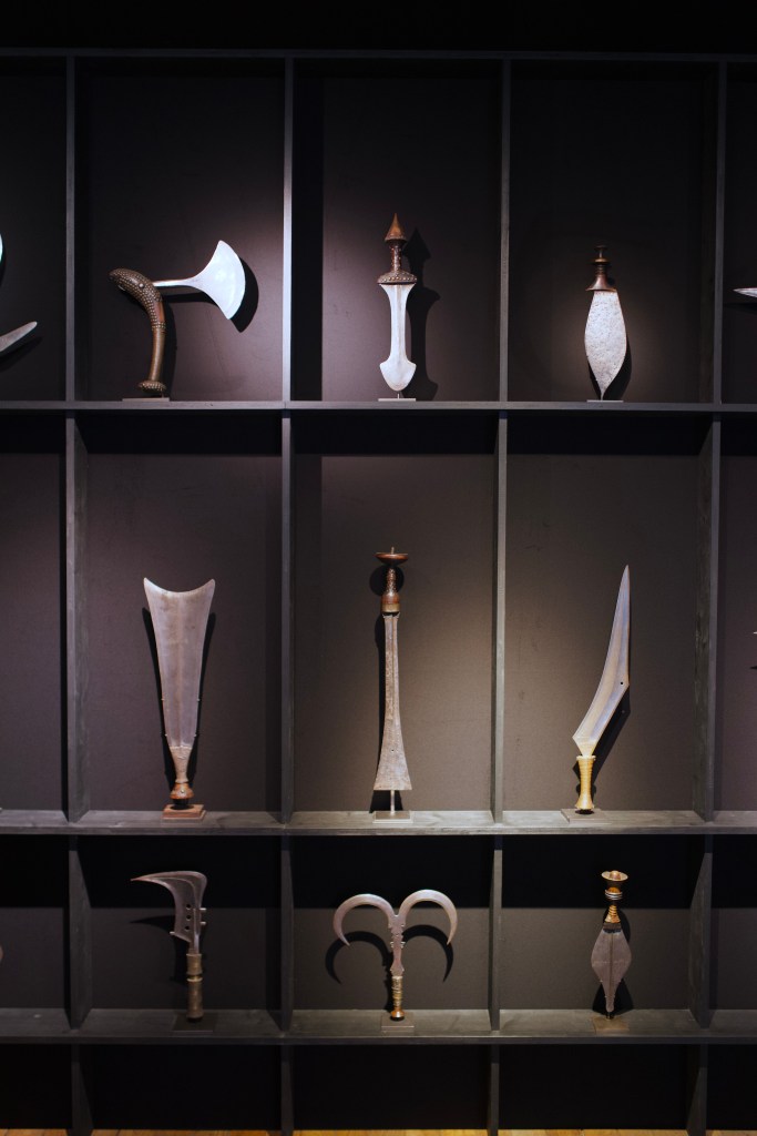 ‘Unû. Prestigious African Weapons‘ organized with the help of Bruno Claessens, which presented Jacques Billen’s – known for its egyptian archeology works – collection of knives, swords, axes and other war instruments from Western and Equatorial Africa,