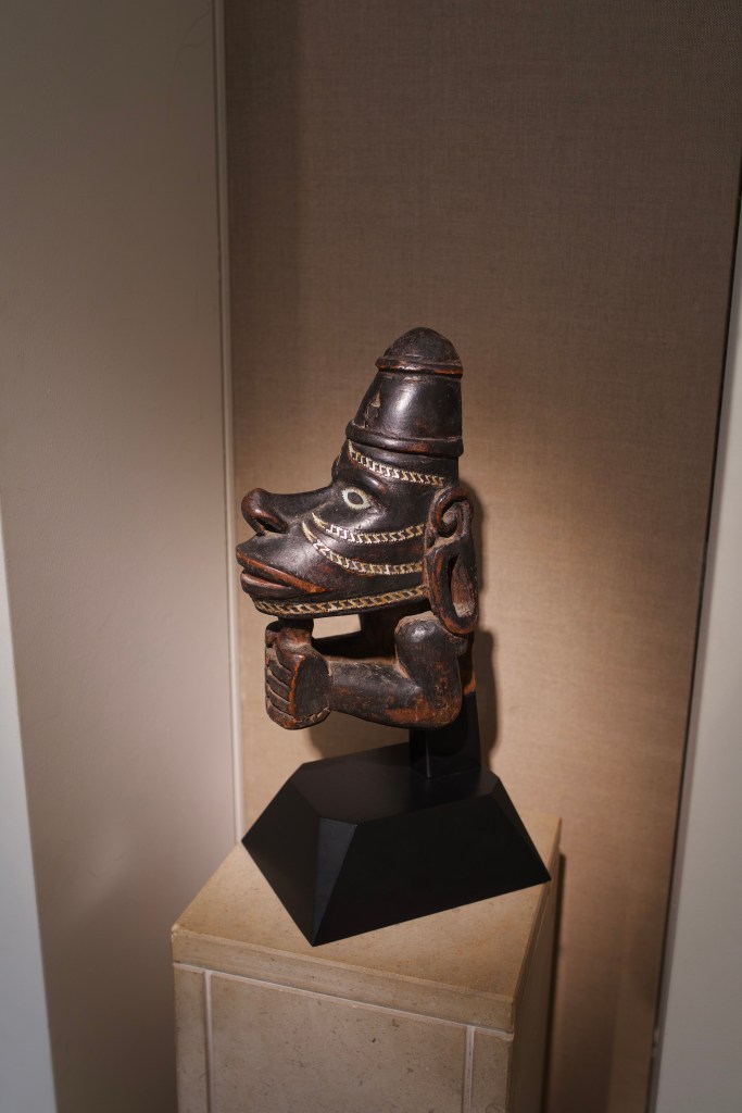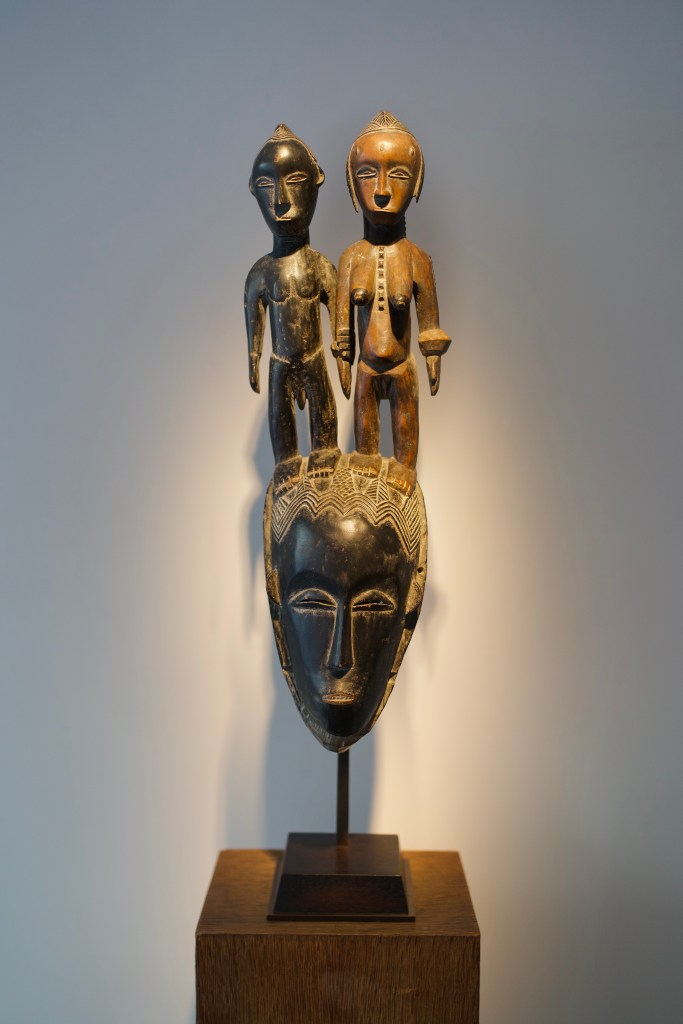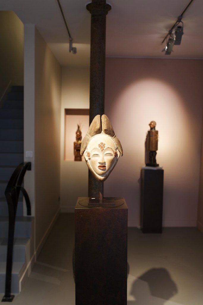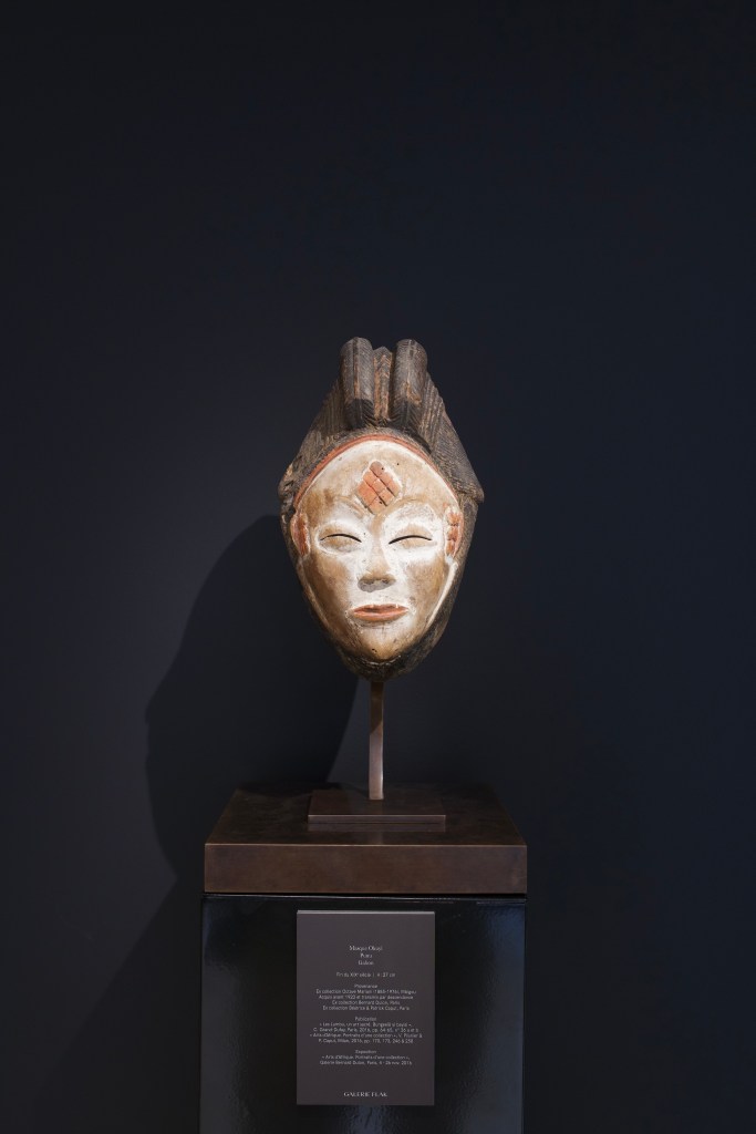 Dogon maternity figure, Mali – Montagut gallery (Barcelona, Spain)Mapiko helmet mask, Makonde, Tanzania/Mozambique ; Epa mask, Yoruba, Nigeria – Bernard Dulon gallery (Paris, France)‘Unû. Prestigious African Weapons’ exhibitionLega mask, Democratic Republic of the Congo ; altar figure, Kaka, Nigeria/Cameroon – De Buck gallery (Bruxelles, Belgium)Songye sculpture, Democratic Republic of the Congo – David Serra gallery (Barcelone, Spain) Ceremonial bowl, Haida, British Columbia – David Serra gallery (Barcelone, Spain) ; male figure, low Sepik, Papua New Guinea – Serge Schoffel gallery (Bruxelles, Belgium)‘Shared passion, a collection of the 21st century’ exhibition, Michel Vandenkerckhove collection: Kota reliquary figures, Gabon ; Nkisi Nkondi Kongo sculpture, Democratic a Republic of the CongoPhilippe Ratton gallery (Paris, France): Gouro mask, Côte d’Ivoire ; Punu mask,GabonPunu masks – Flak gallery (Paris, France)(left), Monbrison gallery (Paris, France)(right)Yoruba mask, Benin ; Nguzunguzu prow figure, Solomon Islands – Entwistle gallery (Paris, France)Baoulé (left) and Yaouré (right) masks, Côte d’Ivoire ; Tabwa statuette, Democratic Republic of the Congo – Eric Herthault gallery (Paris, France)Lucas Ratton gallery (Paris, France)
