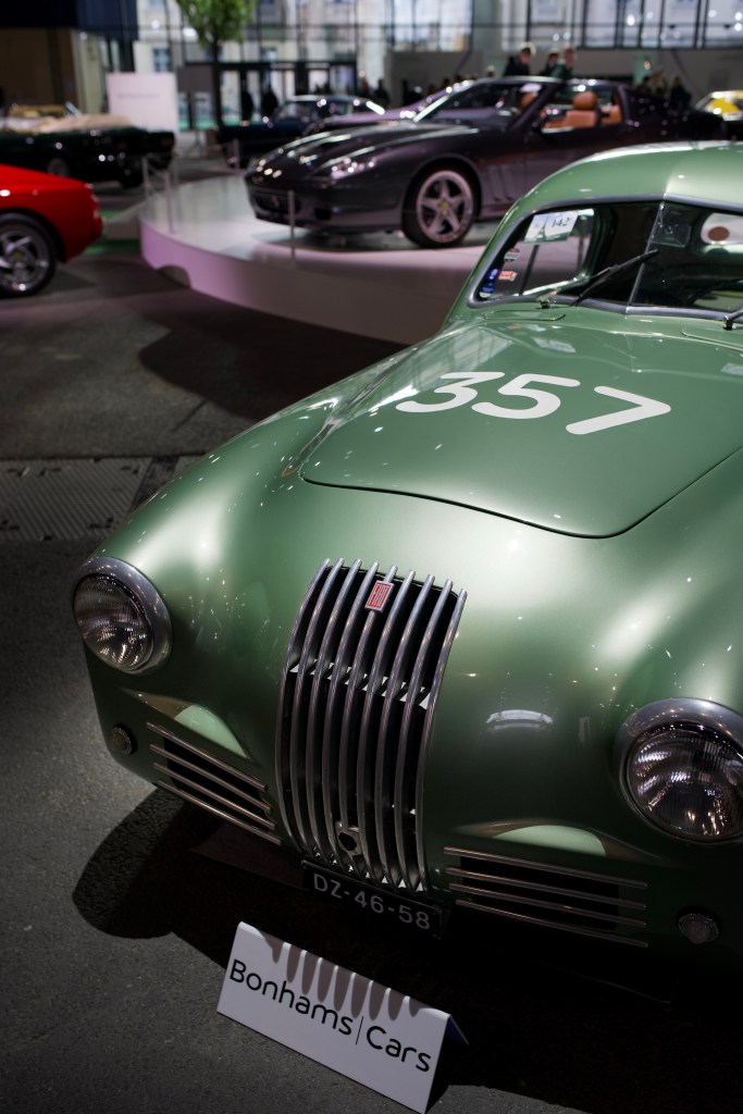 An aerodynamic body painted in light green, fender skirts covering the rear wheels and a grilled three part nose with cromed bars, this Fiat 1100 S berlinetta from 1948 looks like no other car – it received the nickname ‘Gobbone’ (hunchback) – and participated to the Giro di Sicilia, Mille Miglia and Coppa d’Oro Delle Dolomiti races between 1953 and 1955.