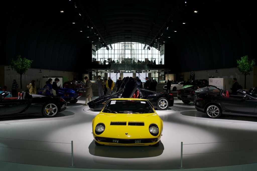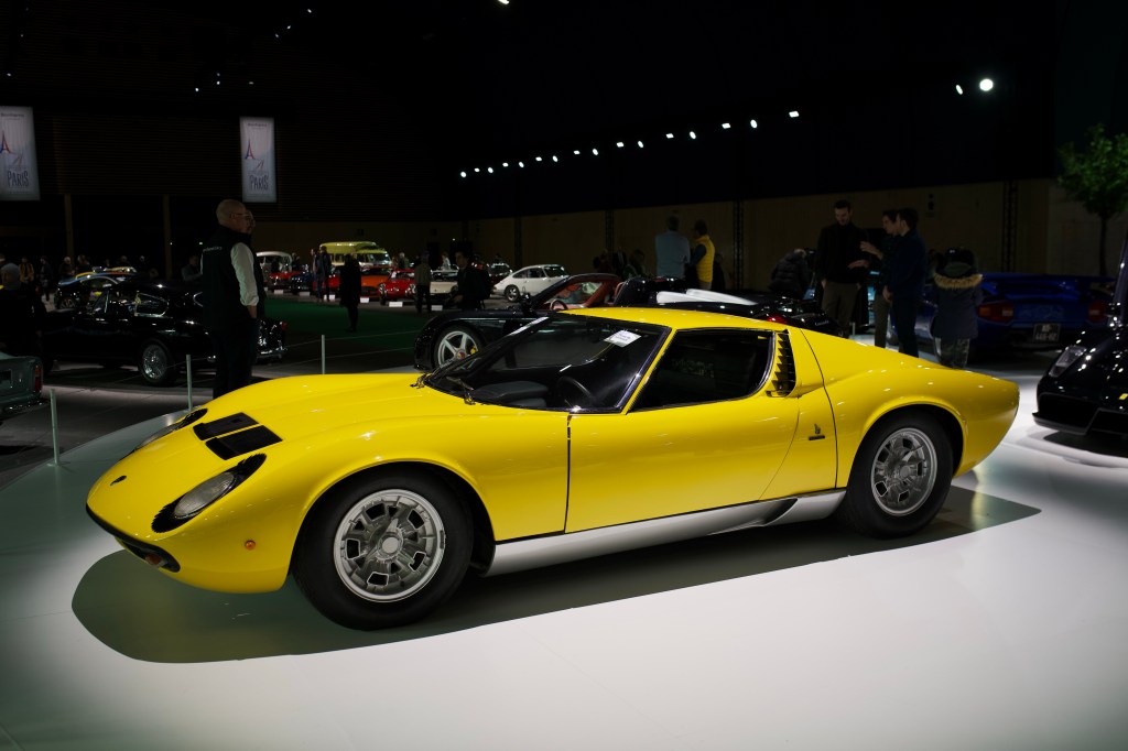Geneva Motor Show, 1966: two years after presenting the 350 GT to tickle Ferrari, Lamborghini unveiled the Miura P400 with its mid-mounted engine and its audacious design by Marcello Gandini, which is considered as the first supercar. The Miura P400 S auctioned here – the upgraded version of the original model, produced from the end of 1968 – had been restored in the late eighties and resprayed in an attractive Giallo Fly.