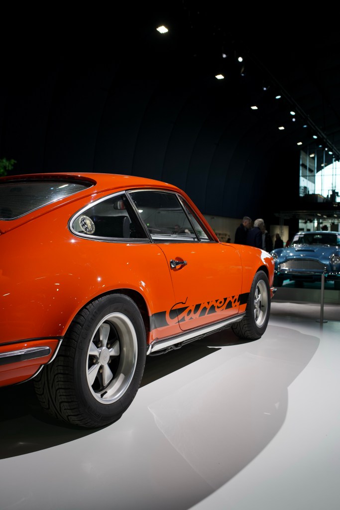 With its duck tail rear spoiler and its lateral bands with cursive letters, the Porsche 911 Carrera RS 2.7 is perhaps the most iconic 911 ever produced. Presented on October 5th 1972 at the Paris Motor Show, the production of 500 models was required for the homologation in the FIA Group 4 (special grand touring cars) but the car was so successful that 1580 cars (excluding 10 prototypes without any chassis number) were eventually sold. The one presented here was one of the first 500 made, in a blazing orange bodywork.