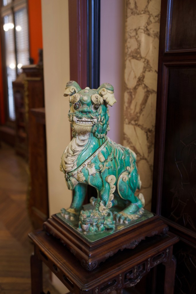 Clémence d’Ennery started her collection buying Chinese chimeras during her teenage years. As her collection grew up, she used to purchase East Asian art objects from about 100 dealers in Paris and in province, during the whole second half of the 19th century. In 1861, she owned around 200 chimeras in jade, porcelain, bronze, and rock stone, receiving private visitors in her appartment, and an exhibition of her collection had been organized at the Hotel Drouot. In 1875, she bought land with her own funds and made built by the architect Pierre-Joseph Olive (1817-1899) the Villa Desgranges that hosts now the museum, on the then fashionable avenue du Bois de Boulogne where the upper-class used to wander before or after a walk to the woods of the Western Paris.