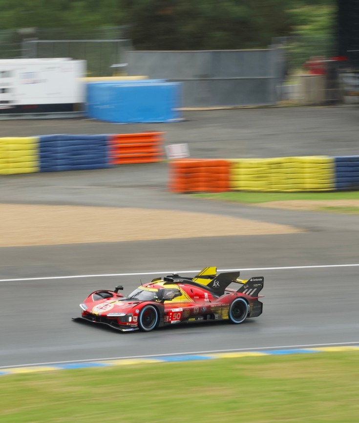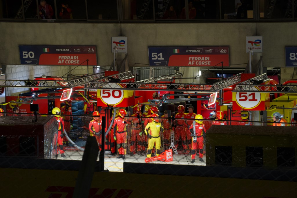 On Saturday 15th June, at 4:00 pm, the legendary French football player and trainer Zinédine Zidane started the 92nd 24 Hours of Le Mans. Whereas they were on the fourth and fifth place on the start grid, the Ferrari #51 and #50 quickly took the control of the race. At 5:40 pm, the first showers began, forcing the teams to change their tires.
