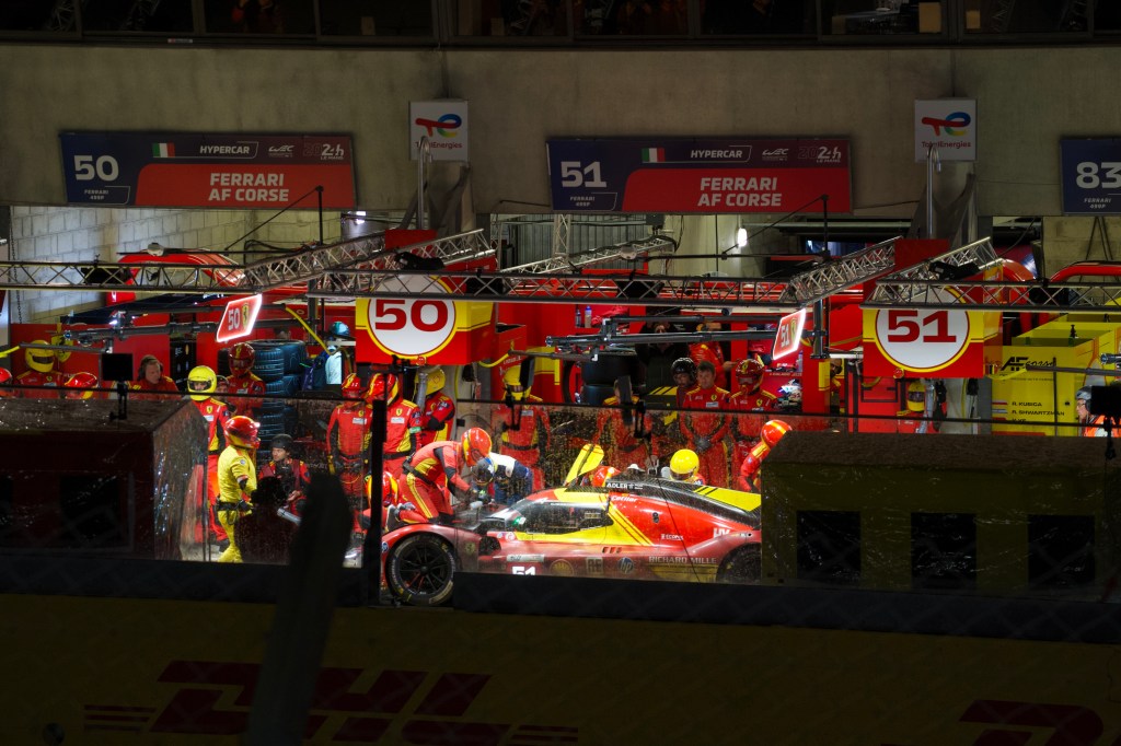 As the sun went down, the Ferrari #83 joined the two other factory 499P, yet the Porsche #5 and #6, the Toyota #7 and #8 and the Cadillac #2 and #3 were at more or less one lap far of the leaders. Before 10 pm, the race was already finished for the both Alpine which suffered engine issues.