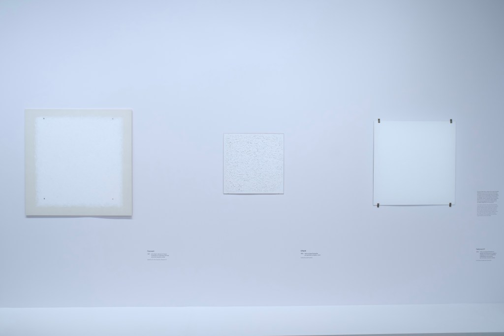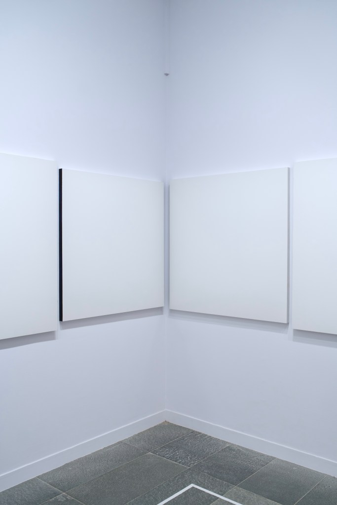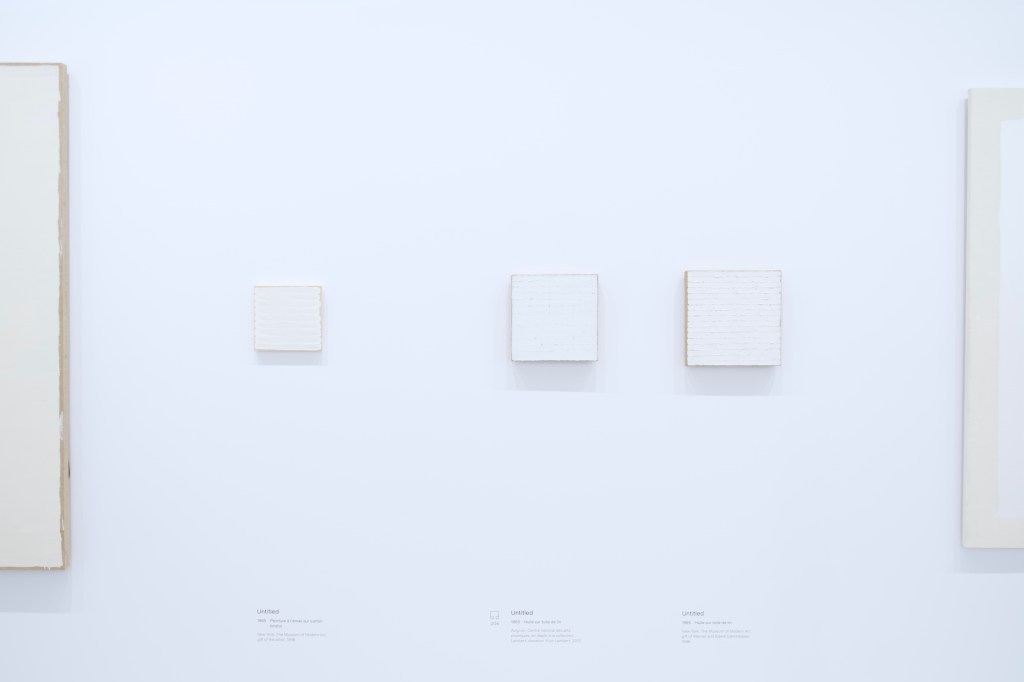With enough space between each work, the exhibition allowed to highlight the specificities of Ryman’s painting: