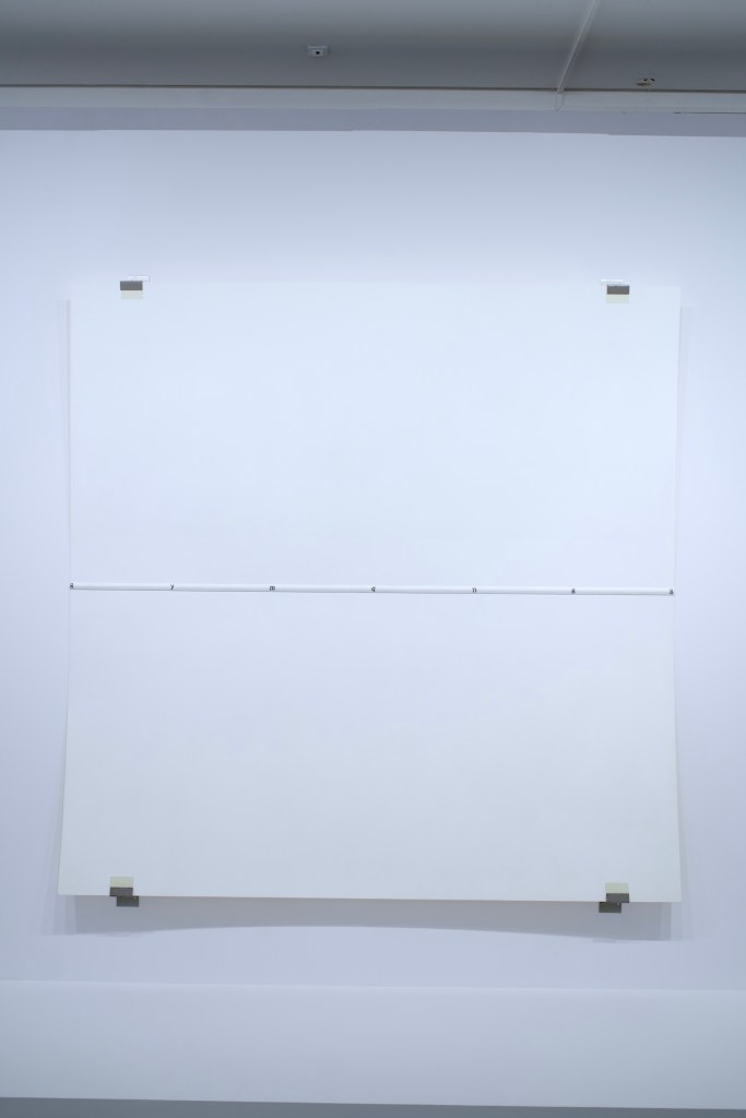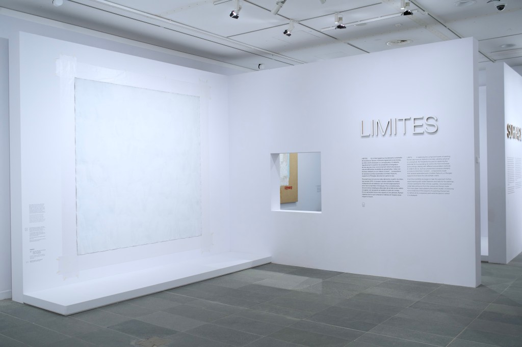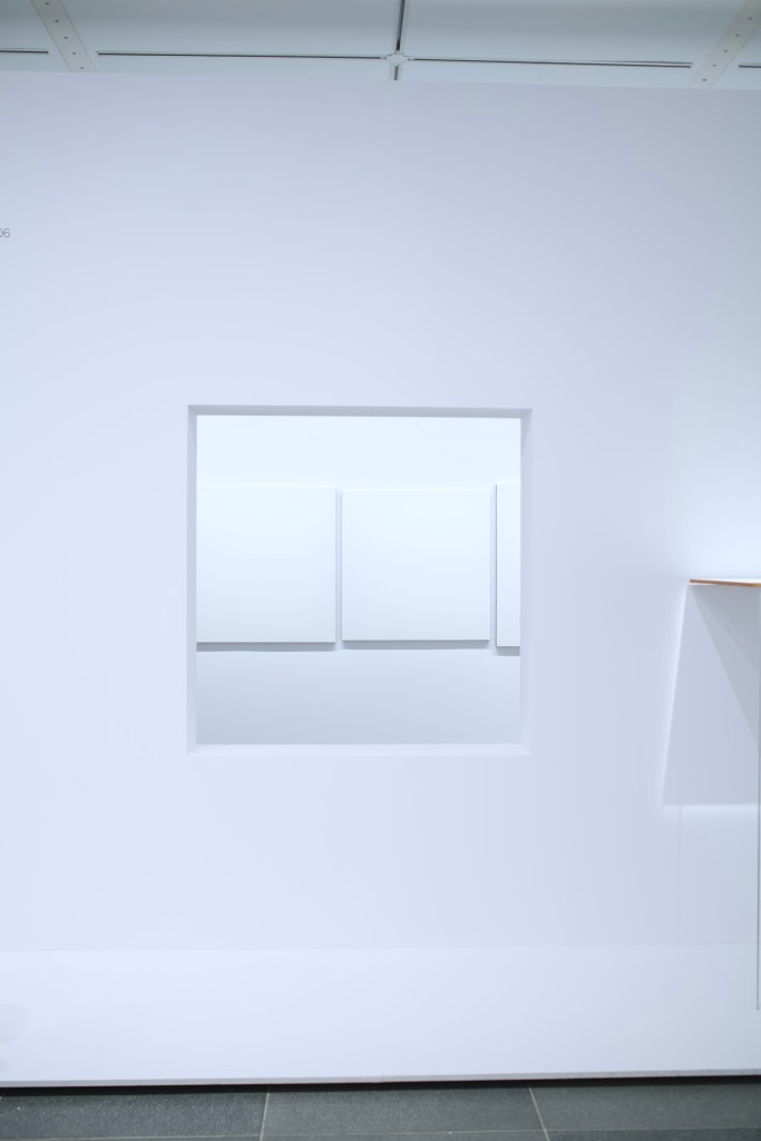 - Space – dismissing the traditional formats of painting (portraits and landscapes), with or without frame, Ryman payed attention to how his works were displayed. Thus, some of the works presented were hung with metal clasps or placed on small metal bars.