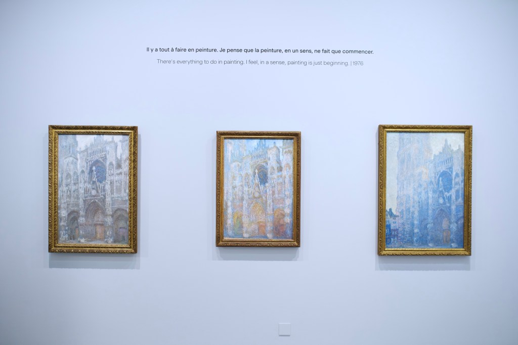 The exhibition ended with an unexpected reunion: next to some of Ryman’s latest works, three paintings of the ‘Rouen Cathedral‘ by Claude Monet reminded the research on the light made by both painters.