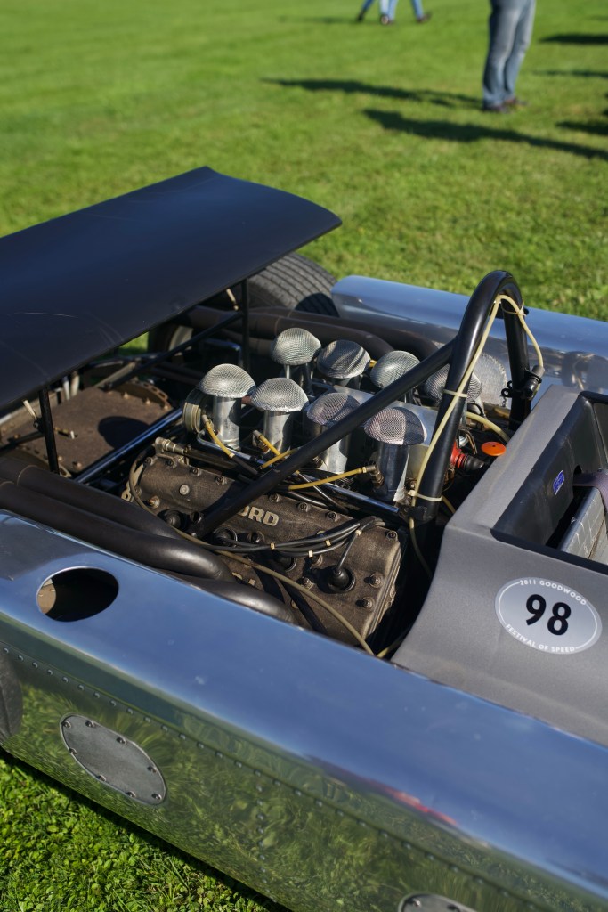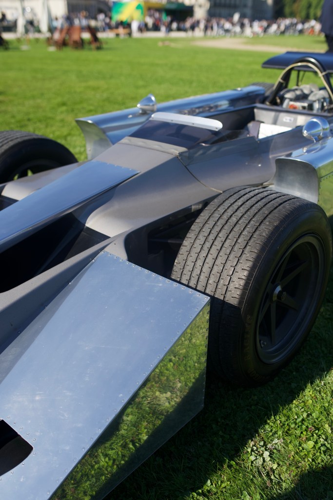 Some Jim Clark vibes to start with a 1964 Lotus 33, part of a 1964-1971 Formula One category which also featured a 1966 BRM P83 and an uncommon 1969 Cosworth 4WD. Sharp like a knife, this car was designed by the formula one engine supplier as a four-wheel drive to improve the traction of cars powered by the British company, but failed to be competitive during the tests and had never been engaged in any race.