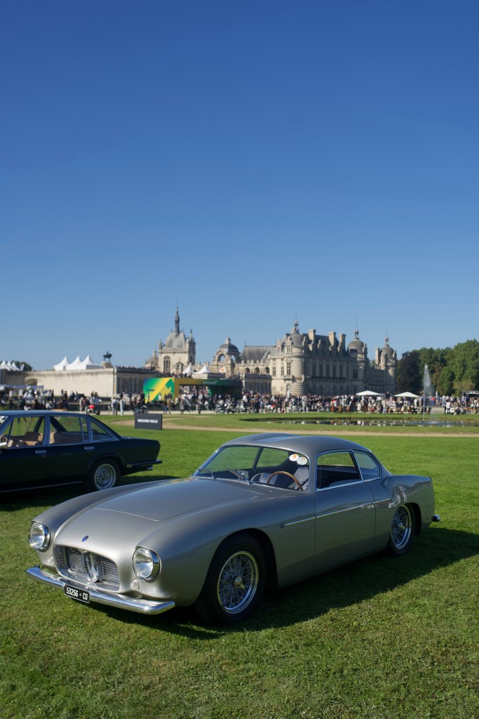 It is only 9 am on this sunny yet fresh Sunday morning but the traffic is slow on the départementale road which crosses the small towns with typical French names of Luzarches and Lamorlaye. Among the cars, some Ferrari and Porsche rolling at 20 kmph before stopping at the next red traffic light. Still a few kilometers before arriving at the Chantilly Arts & Elegance concours d’élégance which took place on September 15th 2024, like every two years. Let’s have a walk on the Chantilly castle’s lawn (laid out by André le Nôtre) for a selection of post-war GT and racing cars.