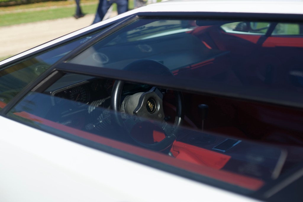 For the 50th anniversary of the production of the Lamborghini Countach, several exemplaries of the model designed by Marcello Gandini were presented, including a LP 5000 QuattroValvole. Conceived as a response to the Ferrari Testarossa and its 390 hp, the LP 5000 QV was unveiled at the Salon de Genève in 1985 and considered as a ‘super-Countach’ with its 455 hp and a four valves per cylinder engine (hence its name quattro valvole in Italian).