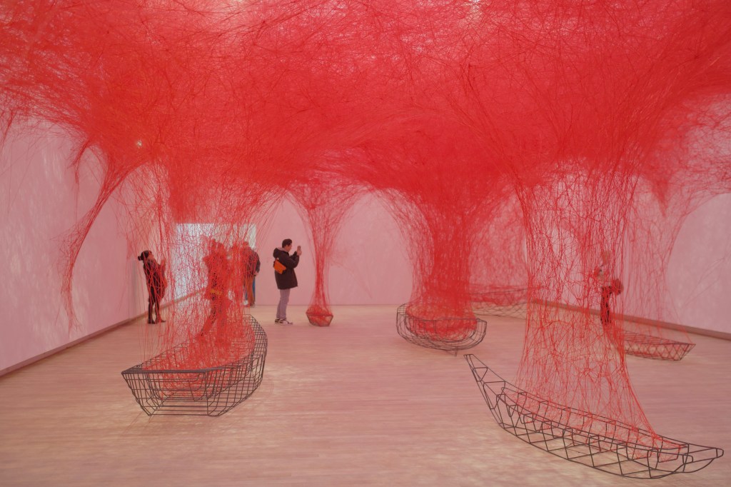 For the first exhibition since its restoration, the Grand Palais in Paris offers to Chiharu Shiota probably her largest exhibition ever organized in Europe, in association with the Mori Art Museum in Tokyo. From 11th December 2024 until 19th March 2025, the show features seven large scale installations and a retrospective of her former works, including staging projects for operas. Renowned for her in situ installations made of interlacing red or black wool yarn (see for instance her exhibition at the Galerie Templon in 2023), the selected works deal with the favorite themes of the Japanese artist, from the questioning about her identity to the relation between life and death.