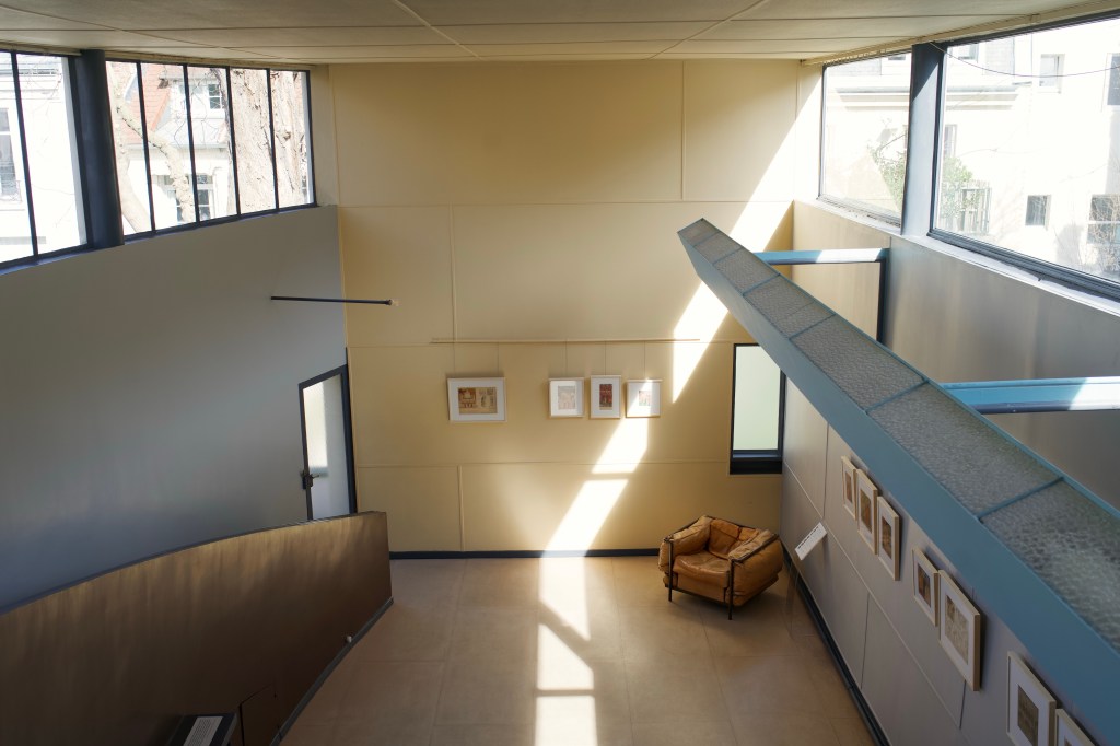 Built in 1926, the project is part of the ‘purist’ villas built by Le Corbusier in the West of Paris (see the villa Stein-de Monzie at Garches or the villa Savoye at Poissy), eager to experiment the theories he had developed in his book, Toward an Architecture (1923), a collection of essays published in the magazine L’Esprit Nouveau in the early twenties, which aimed to define a modern architecture more functional and aesthetically purer. Thus, an impressive triple-height hall welcomes the visitor, who can accedes the upper floors by two staircases on either side of the room.
