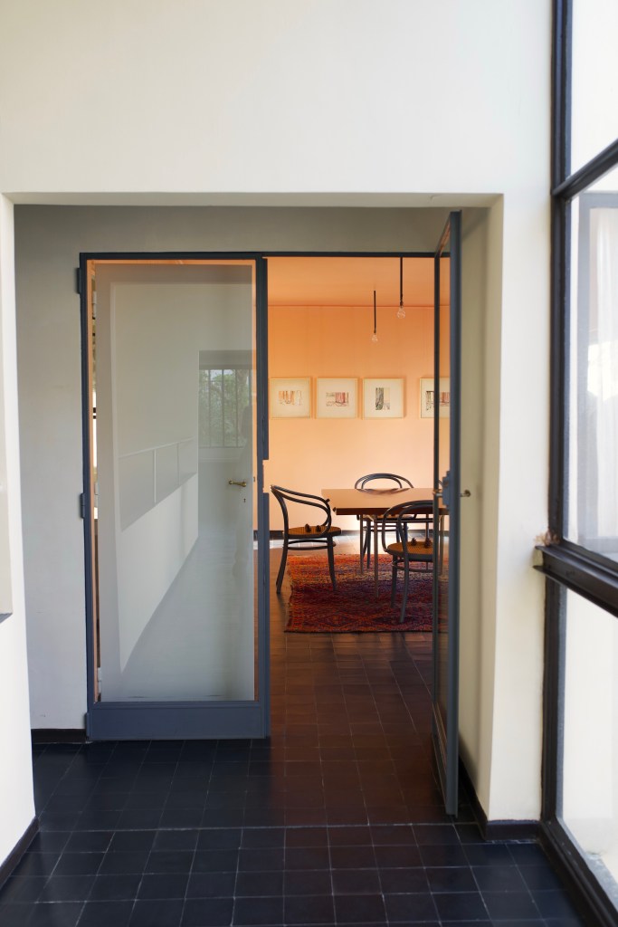 The house also features a library and a dining room, which original furniture was reinstalled in 2009, and a roof garden. Other furniture exhibited includes a Grand Confort armchair in the gallery and a chaise longue LC4 in the walkway, as a nod to his collaboration with Charlotte Perriand and Pierre Jeanneret. All these features contribute to the exceptional character of the place, recognized by the client, Raoul La Roche, who complimented his compatriot by these words: “I had commissioned you ‘a frame for my collection’. You are providing me a ‘poetry within walls’.”(1)