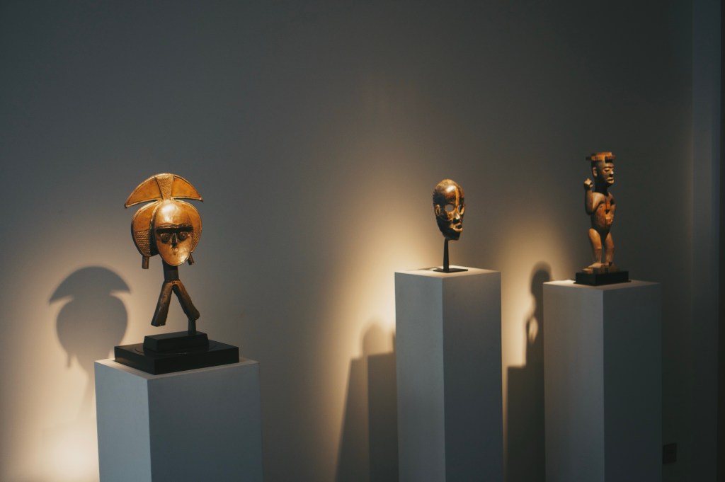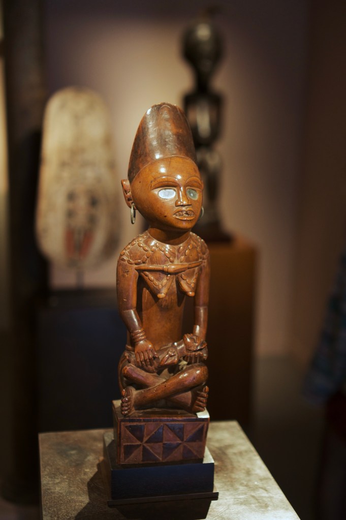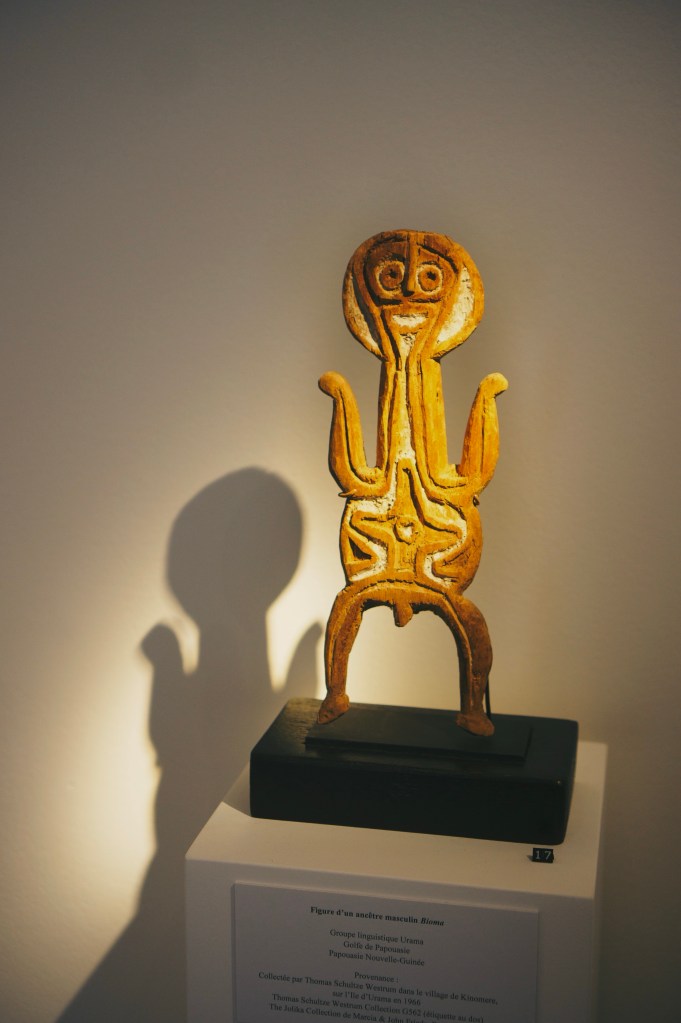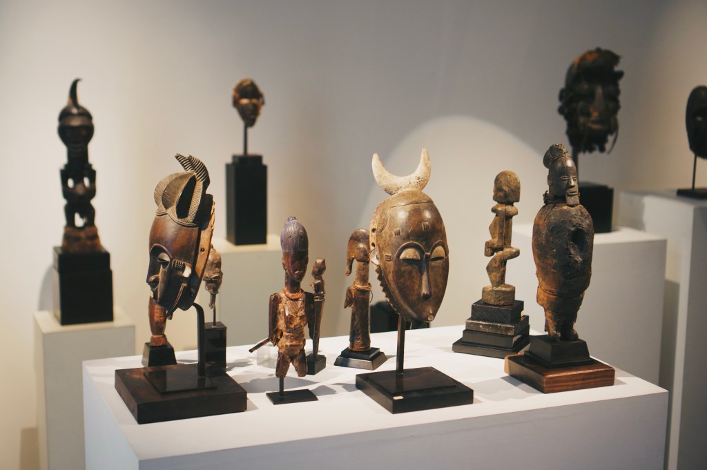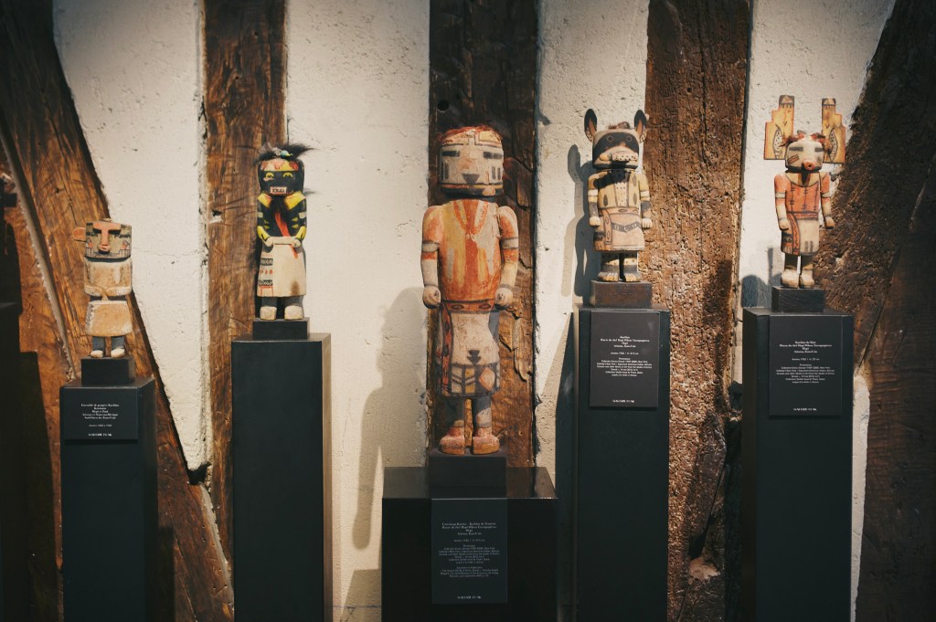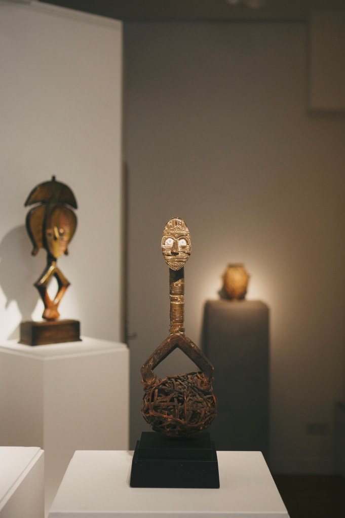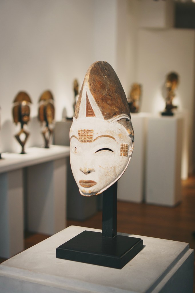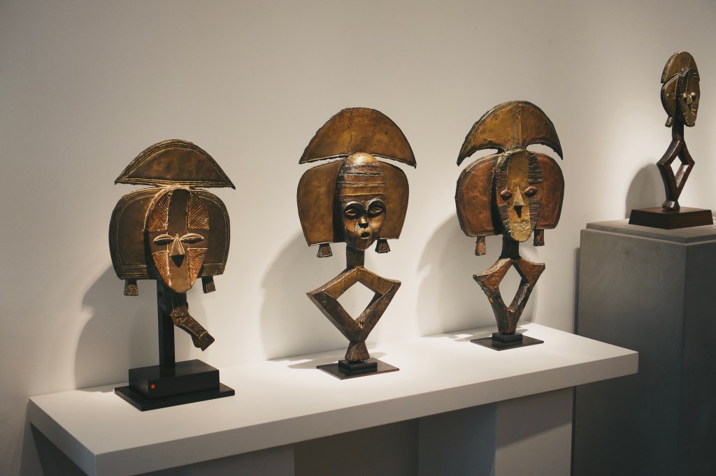 Jo De Buck Tribal Arts, ‘Thing’s with Faces’ exhibition – clockwise: Bembe mask, East Democratic Republic of the Congo ; Kuba Bushoong nobleman smoking pipe, Kasai province, Democratic Republic of the Congo ; Tib double (Janus) head crest, Nigeria ; Ovimbundu scepter for an important female dignitary called Ombweti AngolaGalerie Bernard Dulon: ‘Fragments of Silence: the Max Itzikovitz Collection and various Collectors’ exhibition Michael Hamson Oceanic Art: Tapa mask, Kanipu, Purari Delta area, Gulf Province, Papua New Guinea ; Flute mask, Rao culture area, Upper Keram River/Middle Ramu River, Madang Province, Papua New GuineaGalerie Vallois : ‘Inuits et Sámis – Peoples of the Far North’ exhibition Galerie Franck Marcelin: Figure of a Bioma ancestor, Urama culture, Papua New Guinea Galerie Yann Ferrandin:Nkisi Nkonde figure Kongo, Democratic Republic of the CongoGalerie Yann Ferrandin: Nō masks, Japan ; Fudō Myōō, Buddhist sculpture, Japan, late Muromachi – early Edo period, 16th/17th centuryGalerie Ratton: Dan mask, Côte d’IvoireGalerie Abla et Alain Lecomte: Baulé monkeys, Côte d’Ivoire (top) ; Skull covered with terracotta beads from Niger, Jim Skull (bottom)Galerie Monbrison: Phemba maternity, Mayombe, Democratic Republic of the CongoBruno Claessens – Duende Art Projects, from top to bottom: Punu mask ; Kotareliquary figures ; Sango reliquary figure, GabonGalerie Flak: Hopi Kachina figures, ArizonaGalerie Meyer Oceanic Art: Fly River substitute head, Western Papuan Gulf, Papua New Guinea ; Ancestral spirit or shaman mask, Inupiak culture, Point Hope, Northern AlaskaGalerie Lucas Ratton: ‘Western African Combs’ exhibition