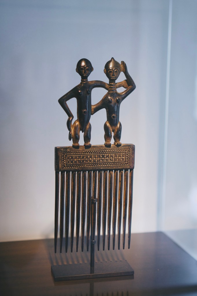 Some dealers proposed thematic exhibitions – ‘Thing’s with Faces‘ at Jo de Buck Tribal Arts, which showcased a selection of works from Central Africa, or ‘Inuits and Sámis – Peoples of the Far North‘ at Galerie Vallois – while others invited contemporary artists, such as the New Zealander Jim Skull (born in 1959) at Galerie Abla and Alain Lecomte. The most ambitious show was probably the one curated by Galerie Lucas Ratton, titled ‘Western African Combs‘, which featured 121 fine, sculpted combs from Côte d’Ivoire, Ghana and Nigeria, drawn from a private collection.