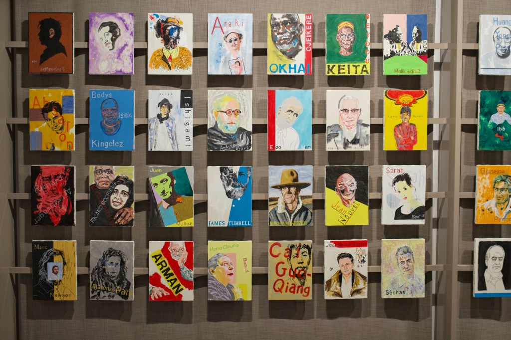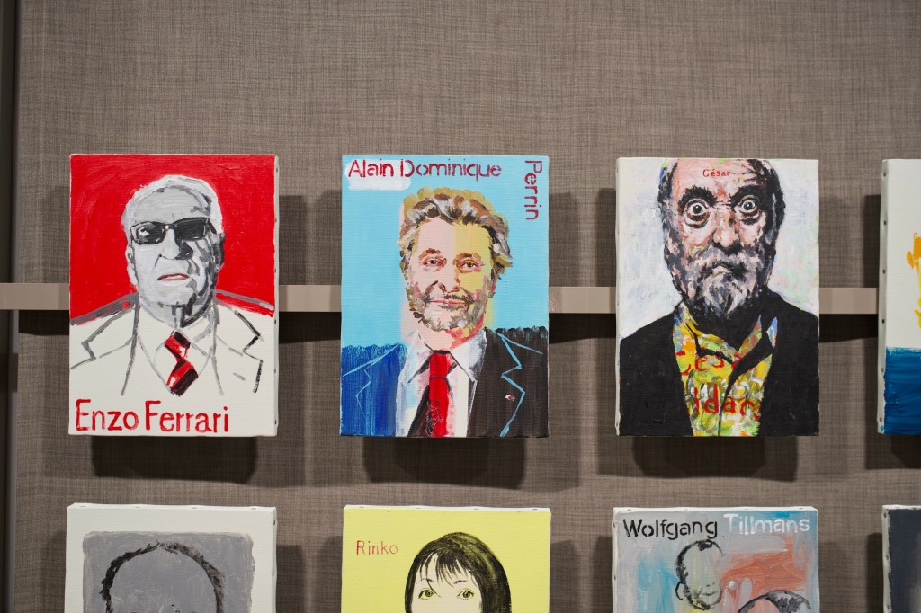 After his first exhibition at the Fondation in 2006, Japanese artist Tadanori Yokoo began, in 2014, a series of portraits of artists and personalities linked to the institution, named The Inhabitants. Completed in 2024, the series ultimately grew to more than 140 paintings. Car manufacturer Enzo Ferrari – for the groundbreaking exhibition of the Scuderria in 1987, Alain Dominique Perrin – founder of the institution in the 1980s, and the French sculptor César – who presented the monumental installation, Hommage à Eiffel, during the first years of the Fondation, are for instance represented in this curated who’s who.