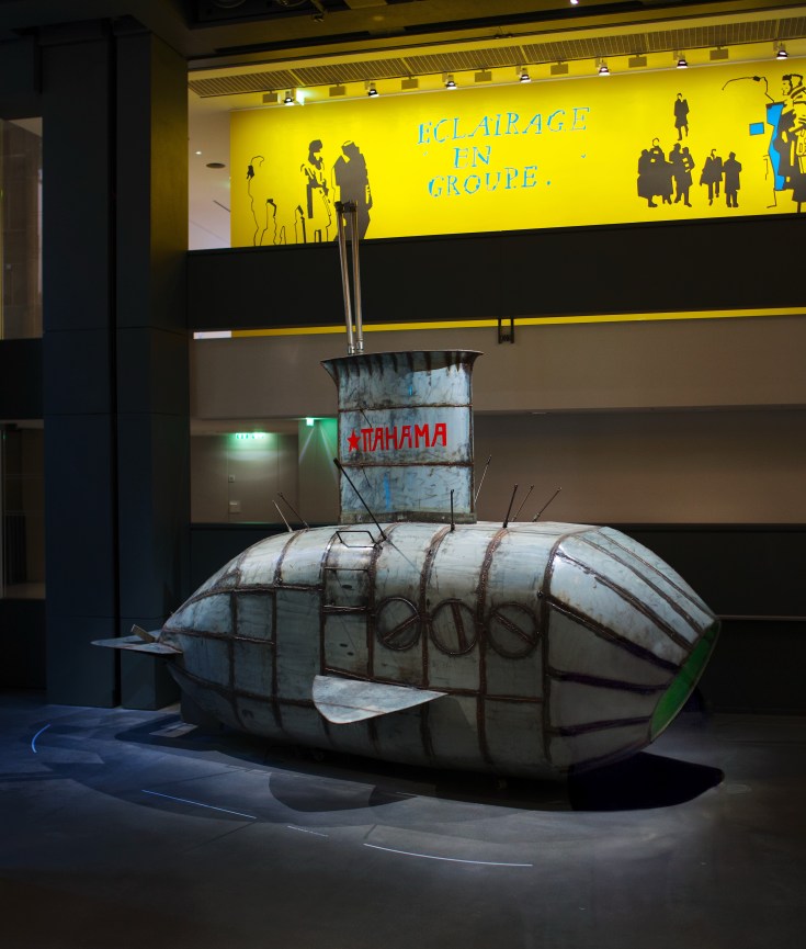 Designed by star architect Jean Nouvel—who also conceived the Fondation’s former home on Boulevard Raspail—the layout’s greatest achievement lies in offering multiple perspectives on the collections, displayed across three floors and within open, flowing spaces. As a result, works installed on the lower floor such as Panama, Spitzbergen, Nova Zemblaya by Belgian artist Panamarenko—a true submarine whose name evokes three symbolic, far-flung destinations and serves as an invitation to travel—are first glimpsed from above at the beginning of the visit, before being encountered up close at the end with its true 22 horsepower diesel engine.