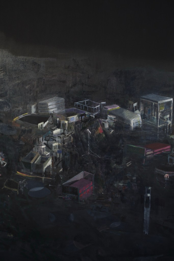 At first glance, Double Eclipse by Argentine artist Guillermo Kuitca appears to depict a cityscape at night. On closer inspection, however, the buildings reveal themselves to be stacks of chairs and beds, unfolding a dreamlike yet eerie vision that hovers between fantasy and reality.